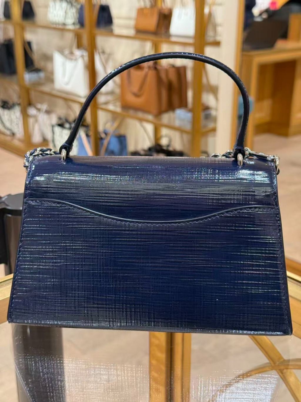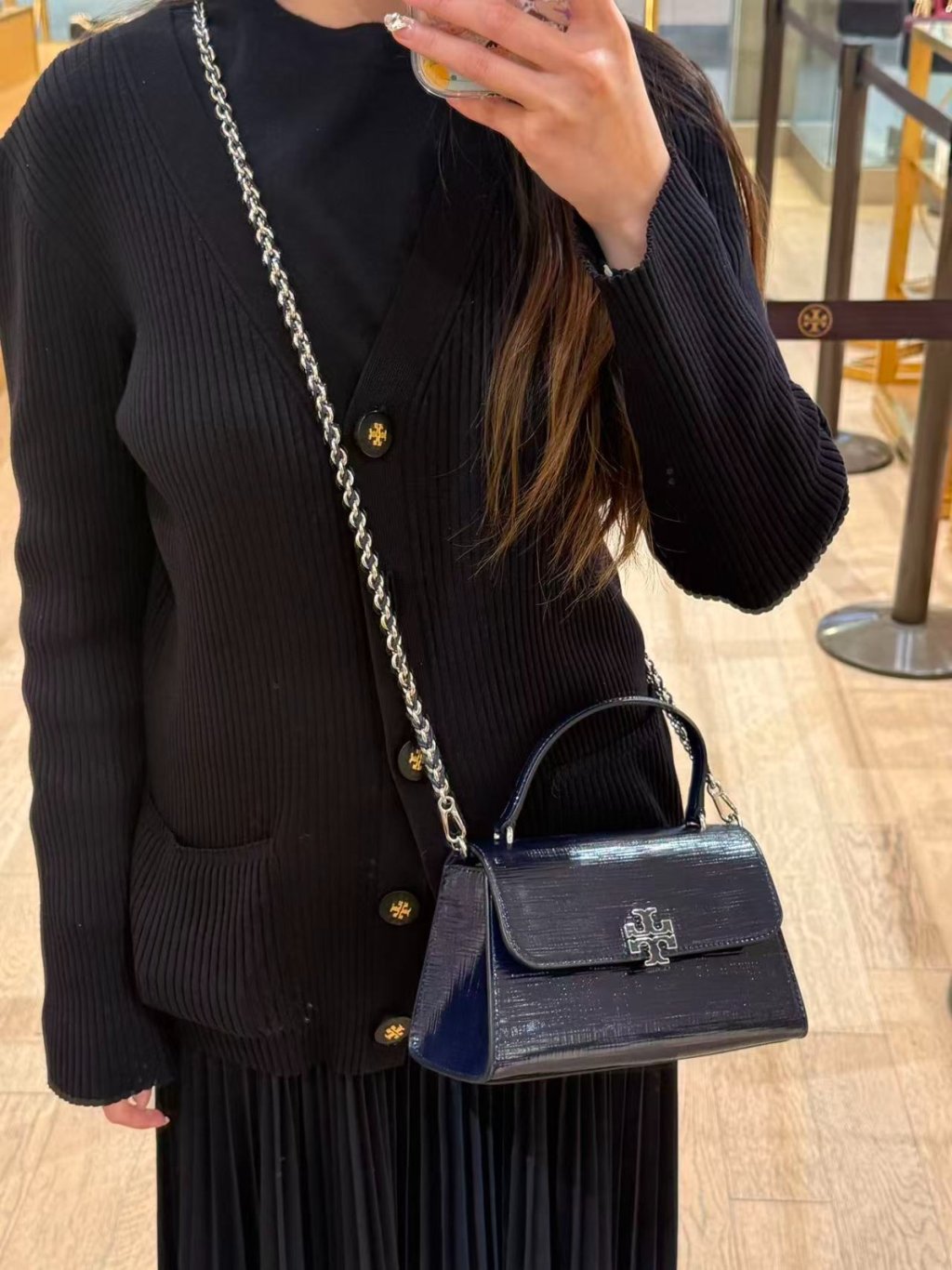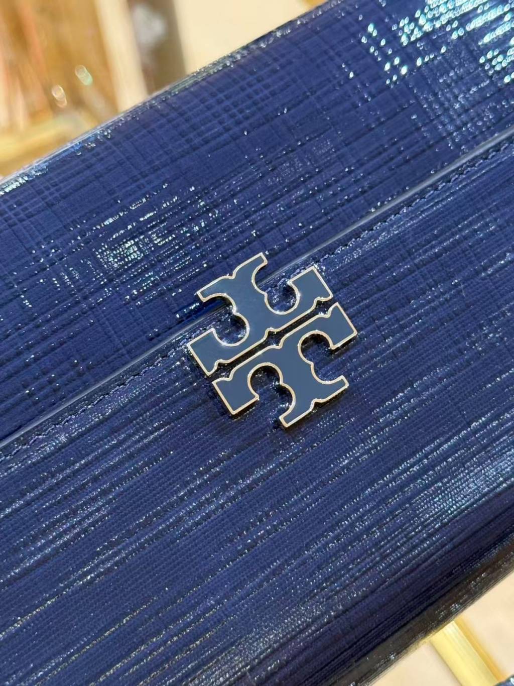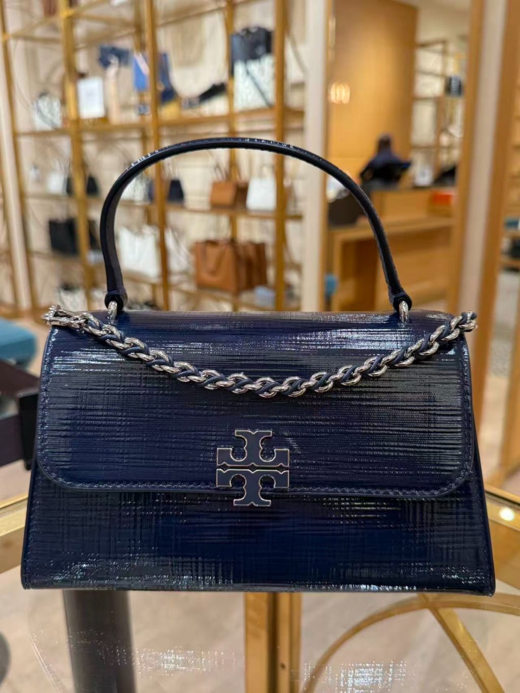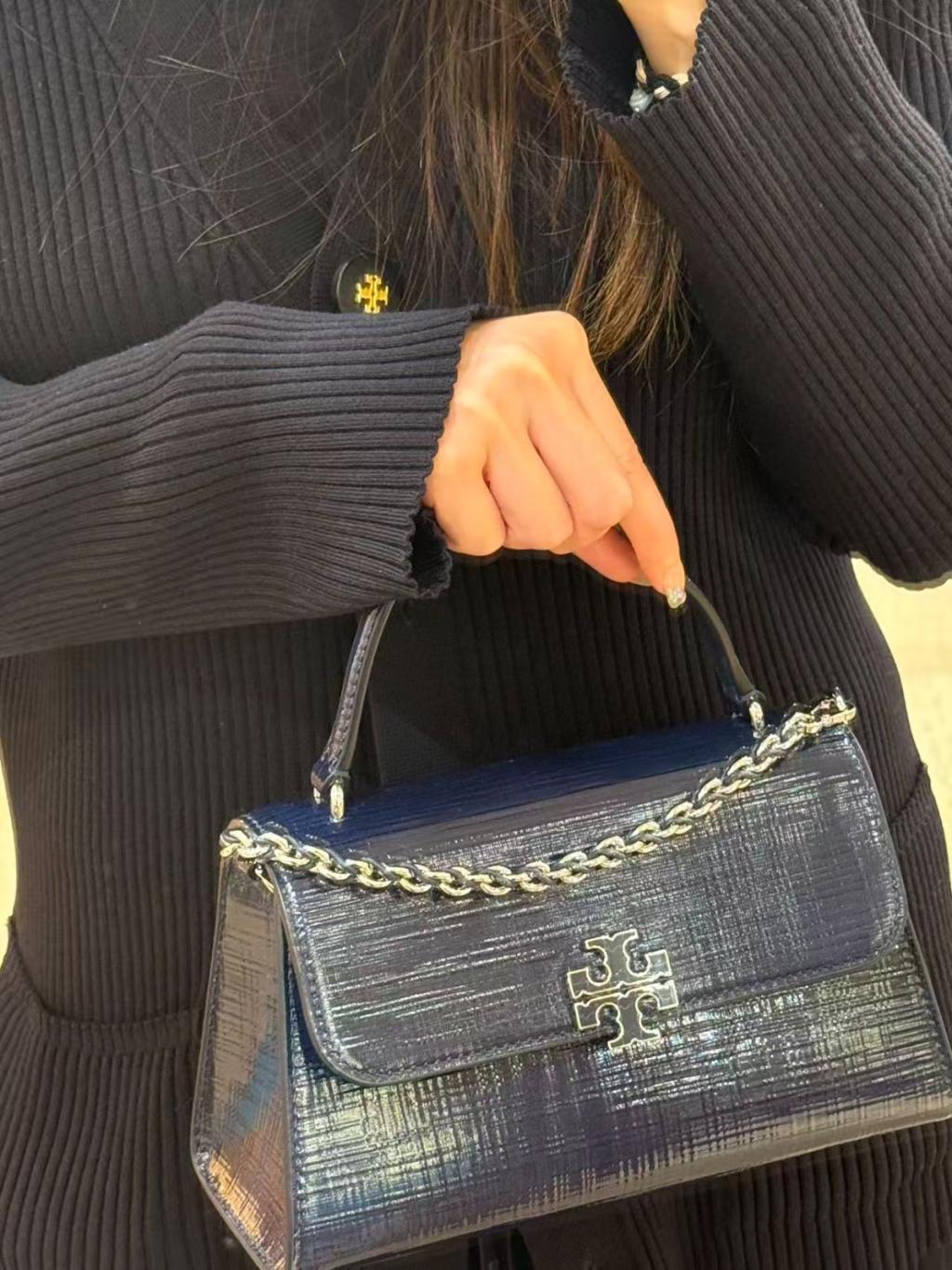 (New) Tory Burch Britten Textured Patent Top Handle (深藍 Navy)