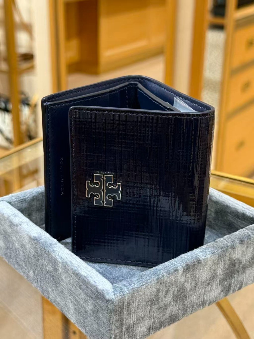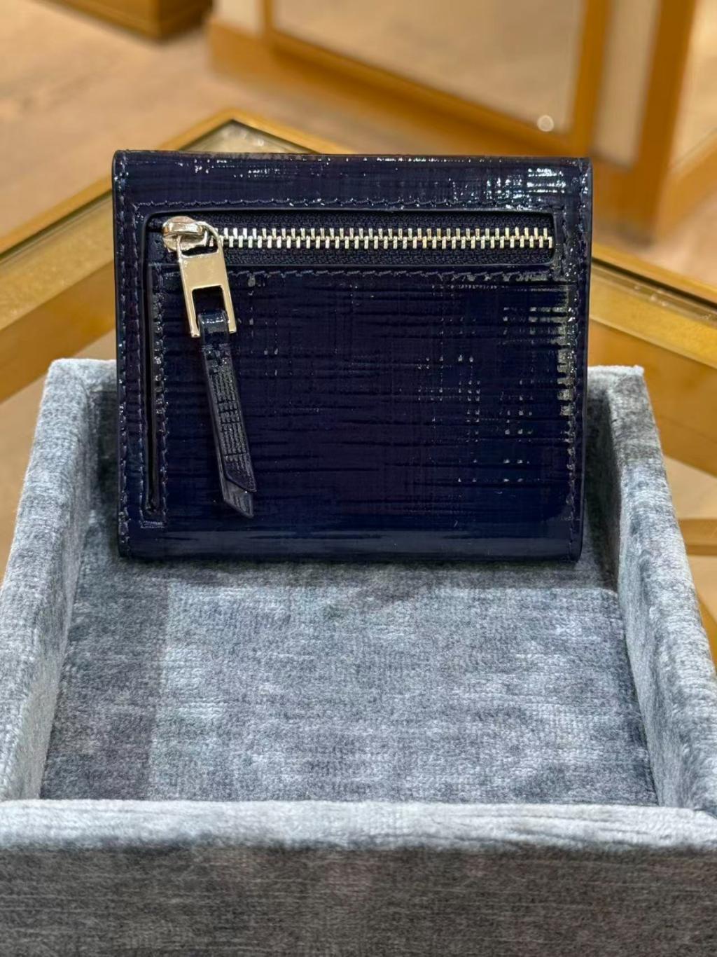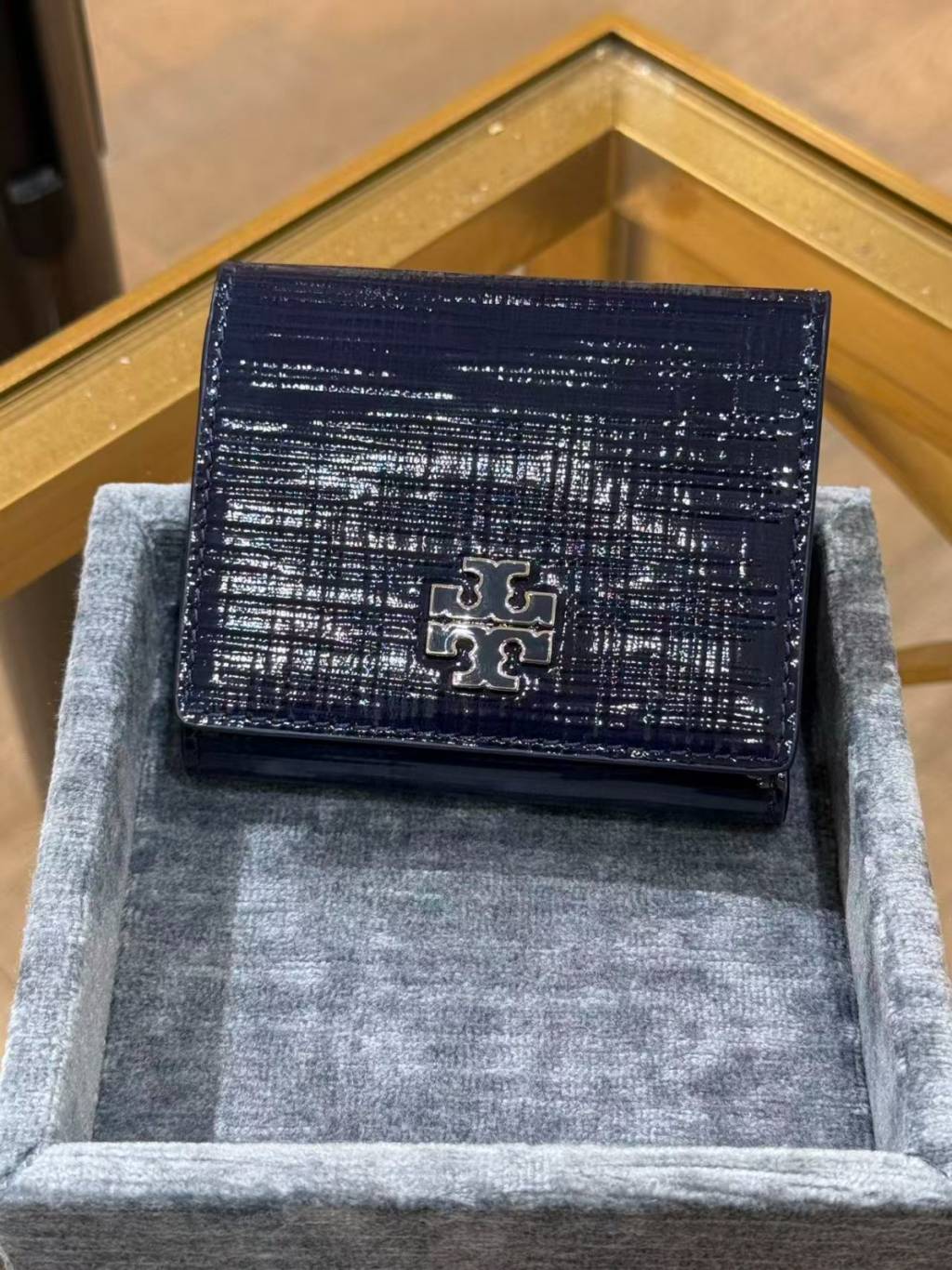 (New) Tory Burch Britten 漆皮短銀包 Textured Patent Compact wallet (深藍 Navy)
