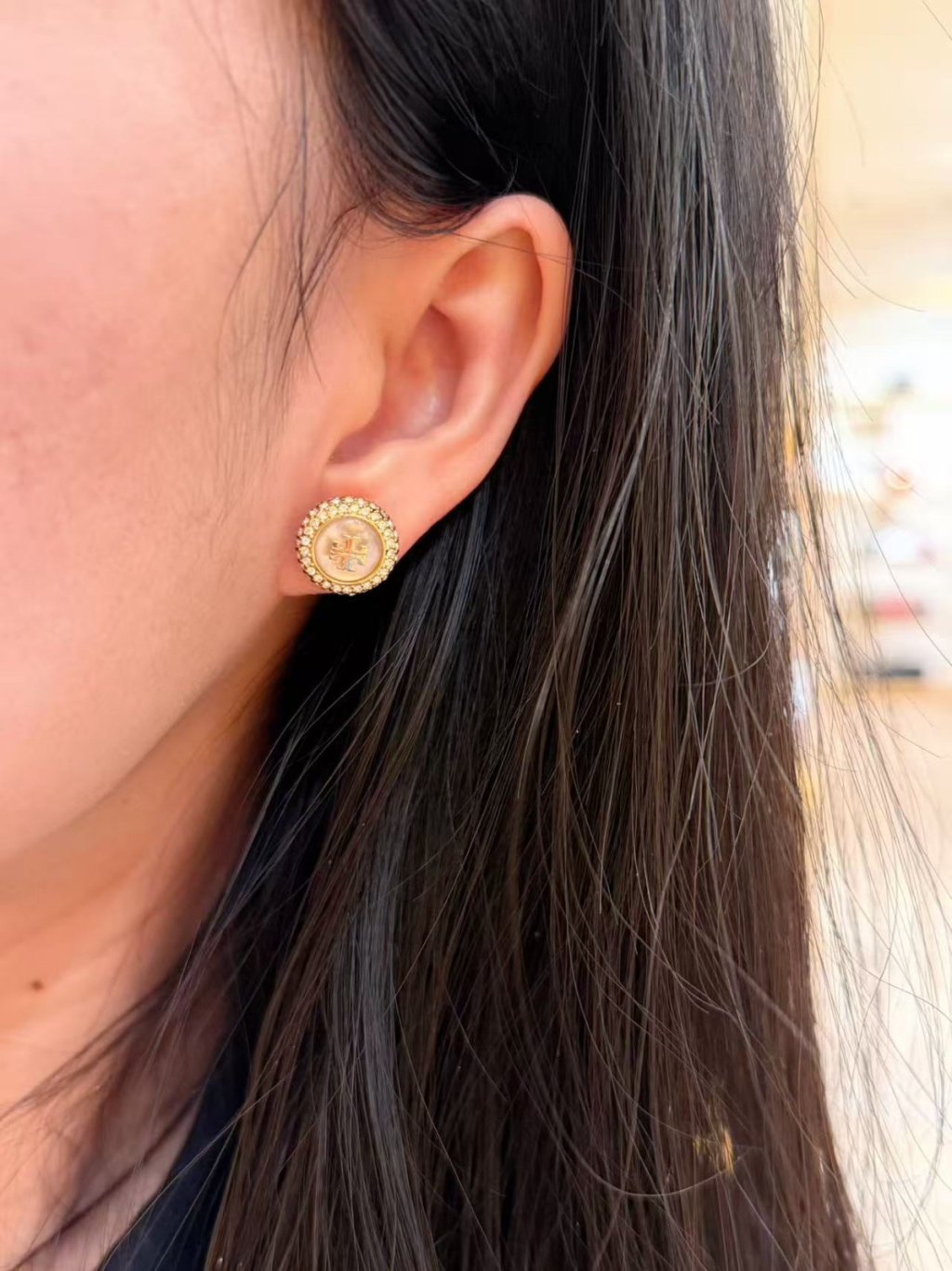 主頁 Tory Burch Mother of Pearl Pave Stud 貝母耳環