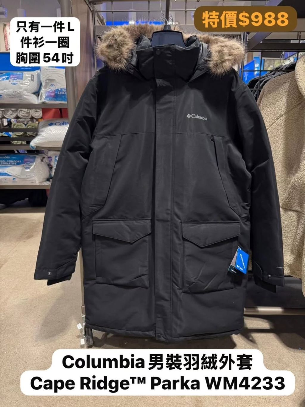 主頁 (加拿大現貨) WM4233 Columbia 男裝羽絨外套 Cape Ridge Parka (010 黑 Black) L54"