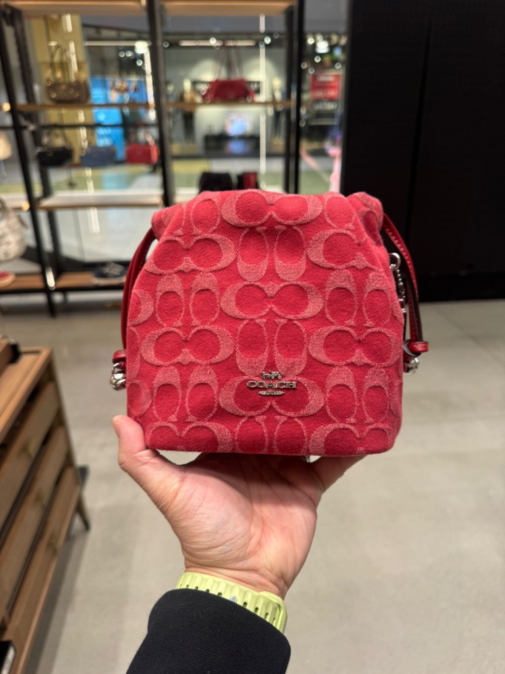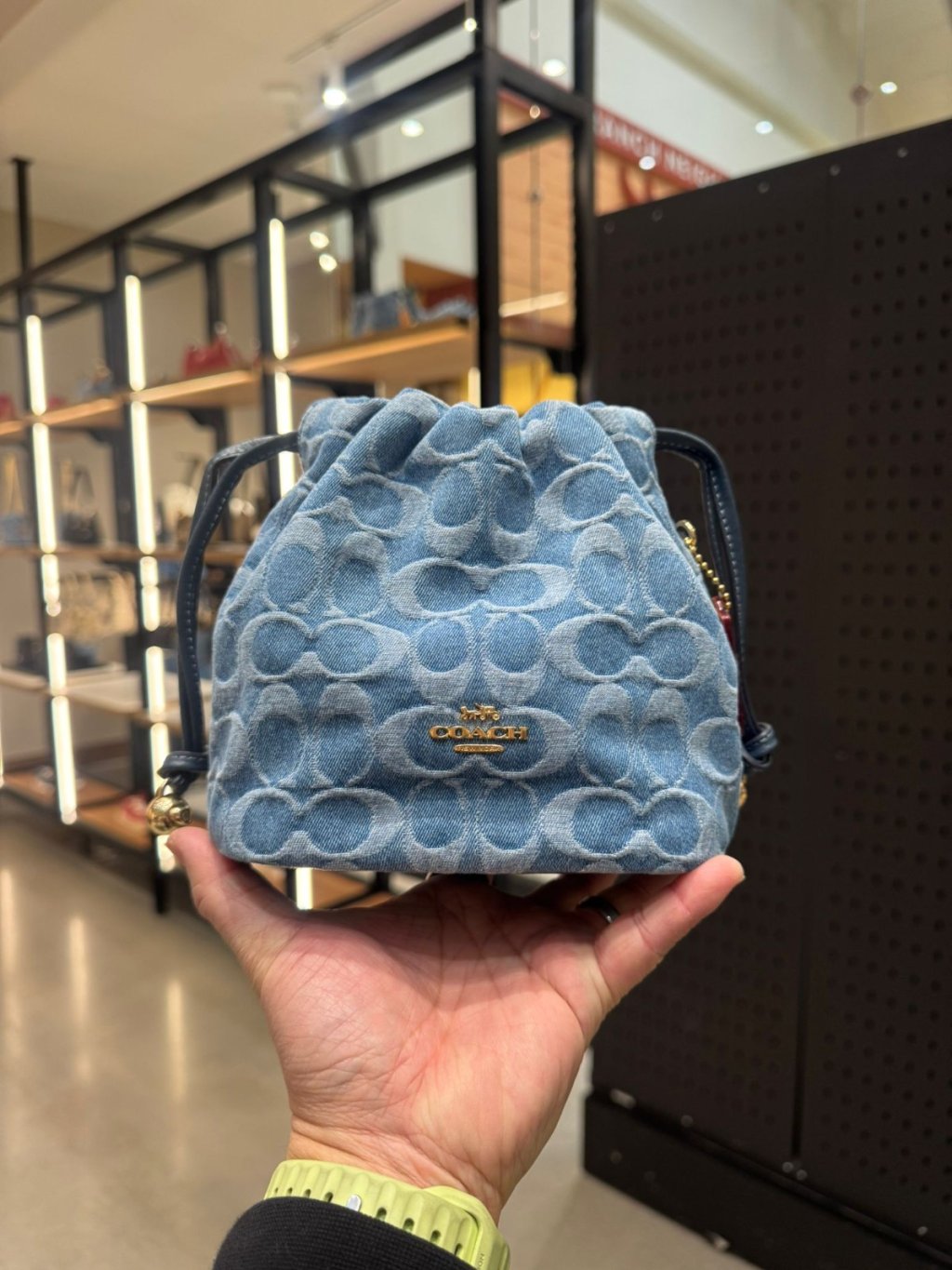 Coach 牛仔索繩袋 Faye Mini Drawstring Bag In Signature Denim