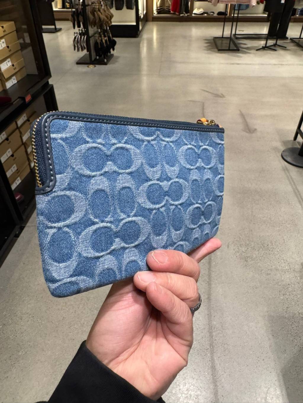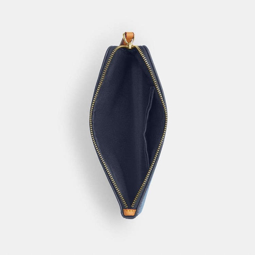 Coach 牛仔大單手拿 Large Corner Zip Wristlet In Signature Denim