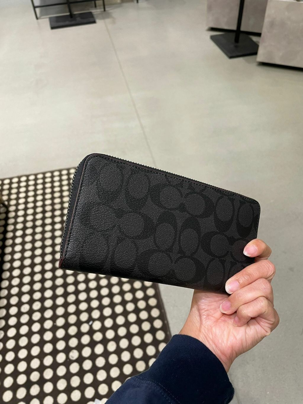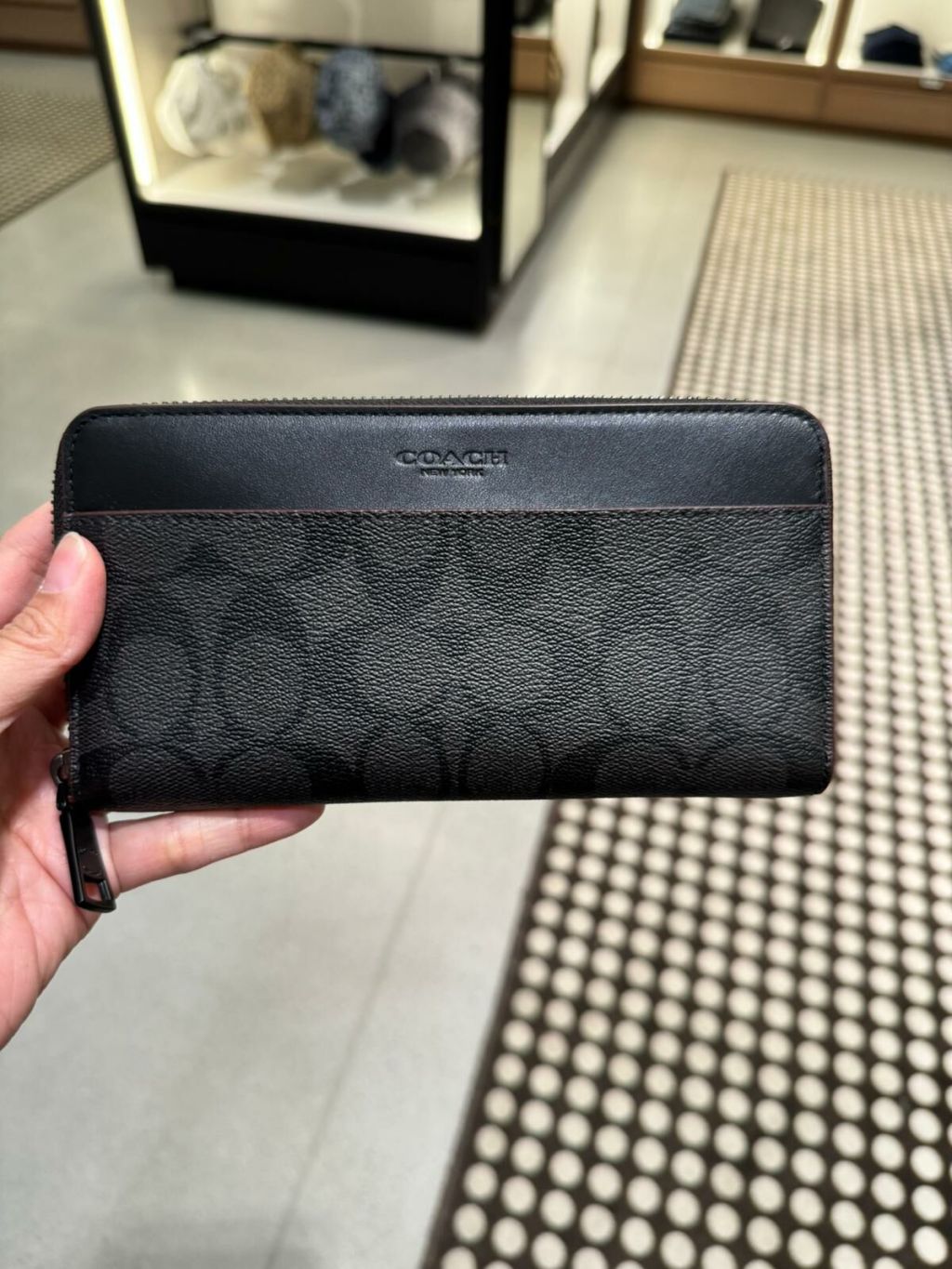Coach 男裝 Accordion Wallet 拉鏈長銀包 (滿版黑)