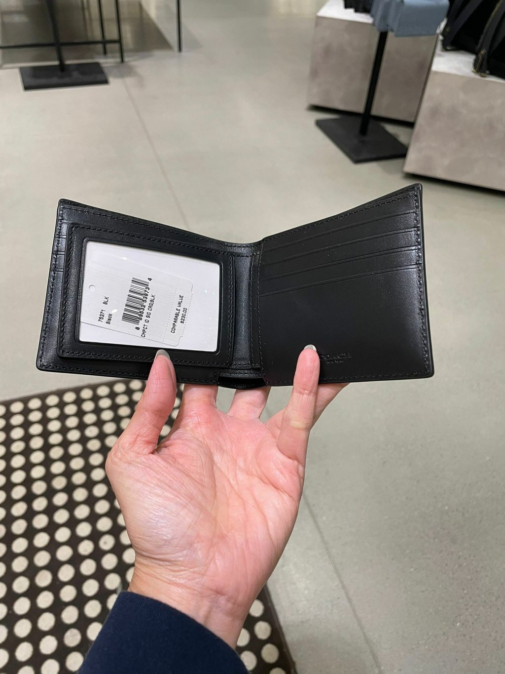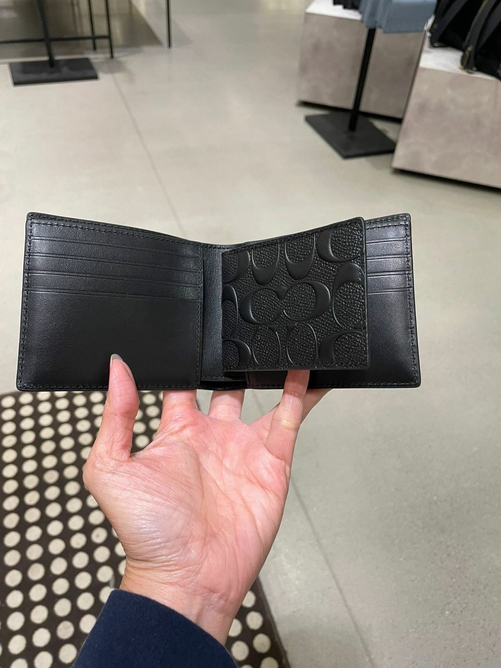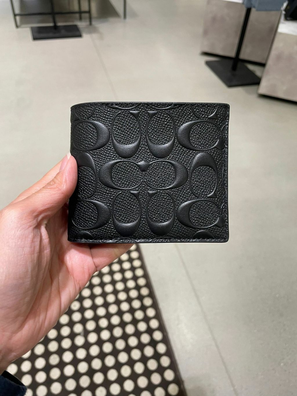 Coach 男裝銀包 (1+1) 真皮壓紋滿版黑