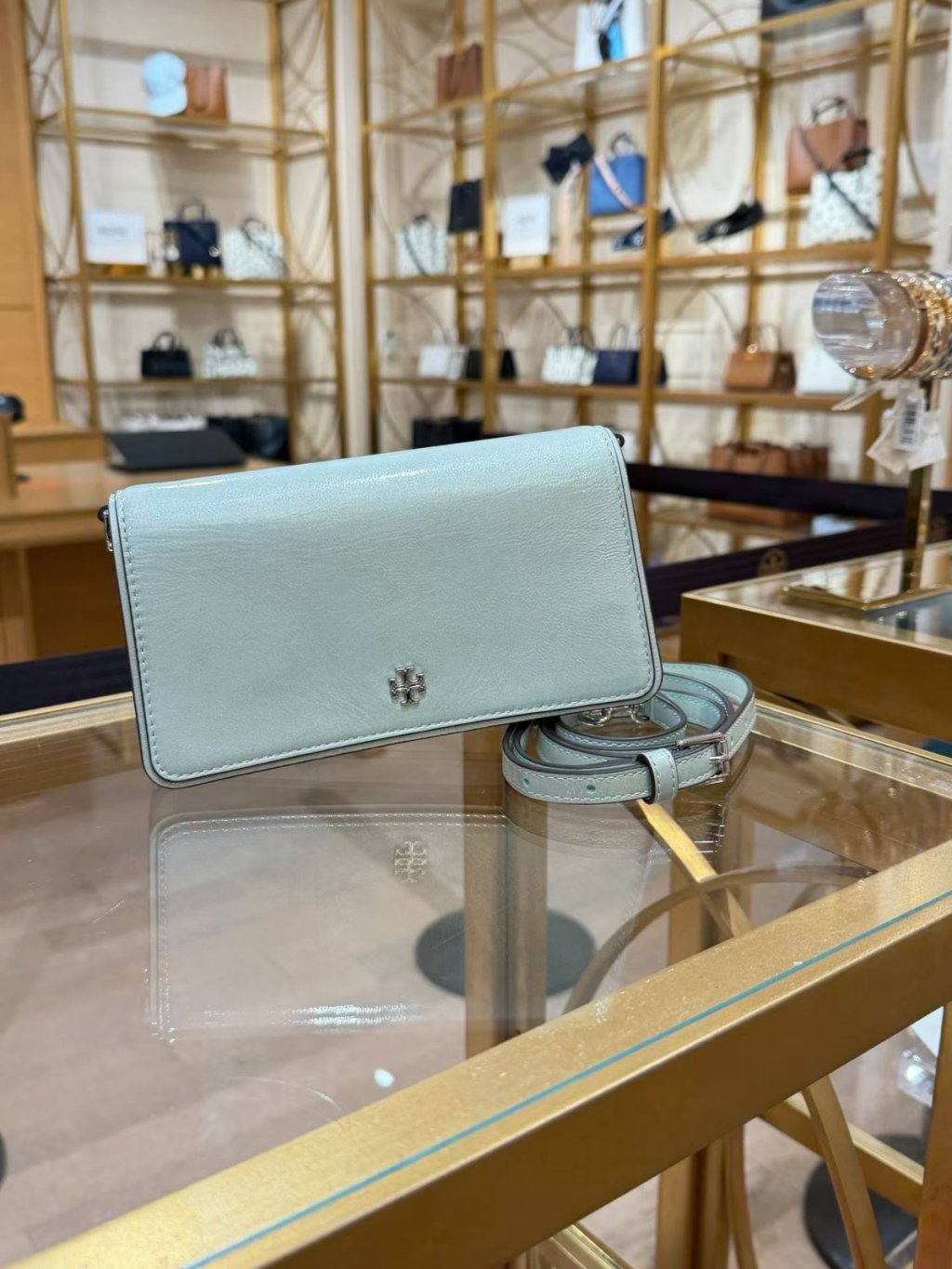 Home Tory Burch Emerson Shiny Textured Mini Crossbody (Mint)