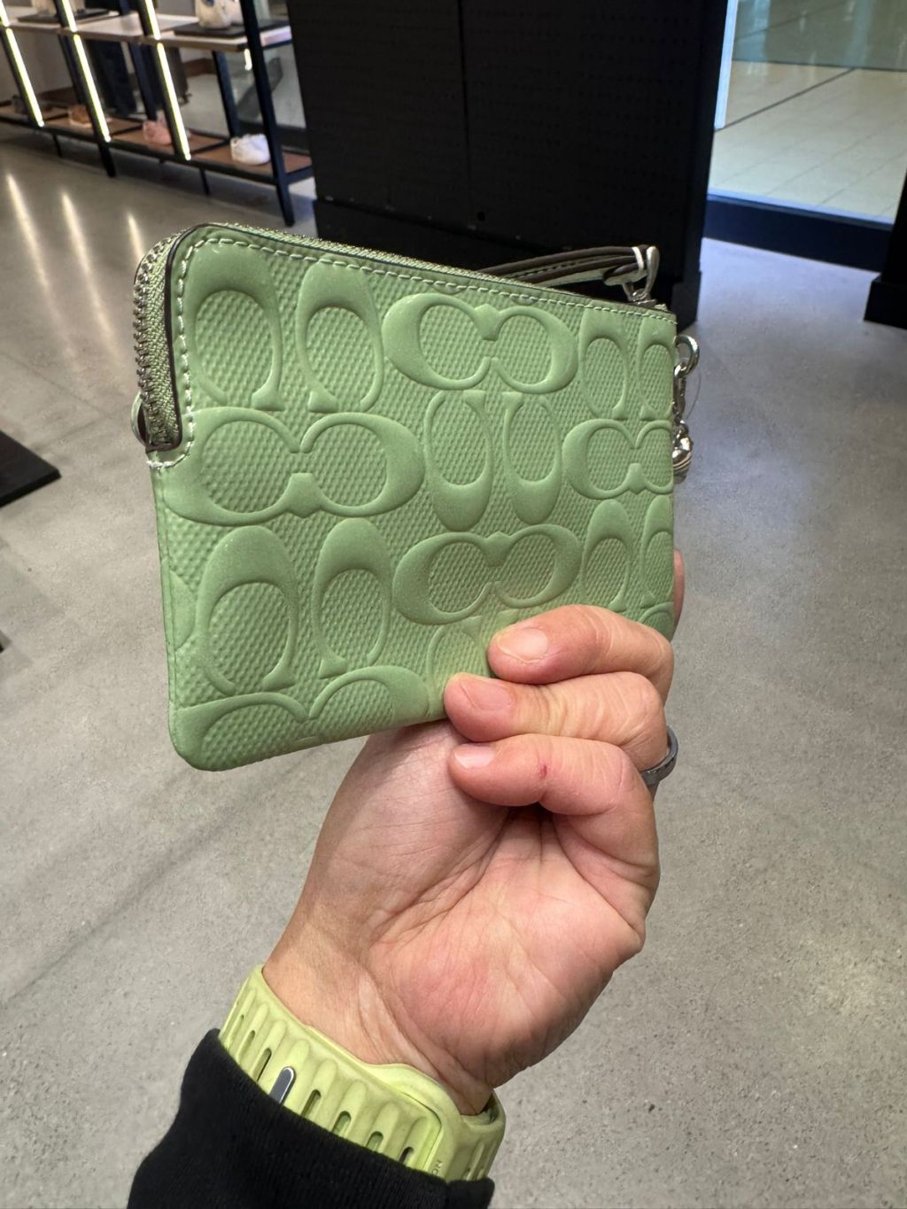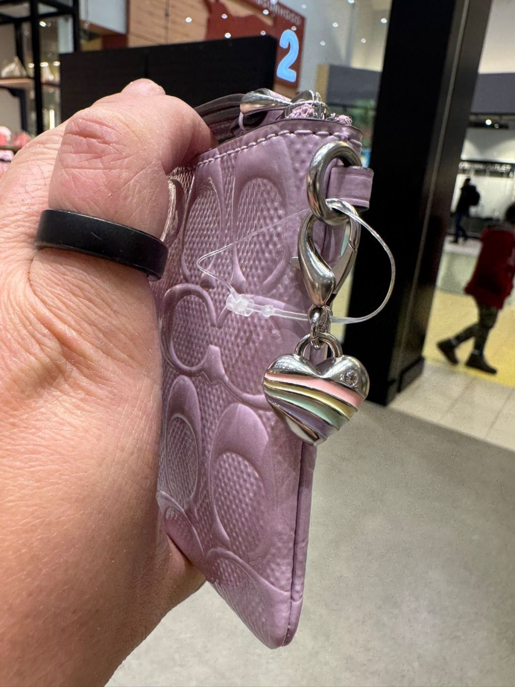 Coach Corner Zip Wristlet In Signature Leather With Heart Charm