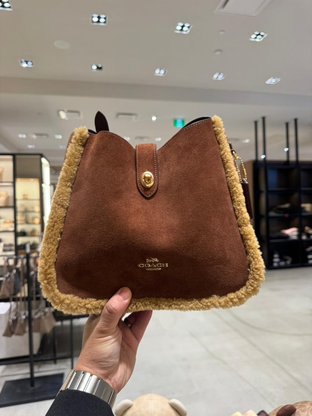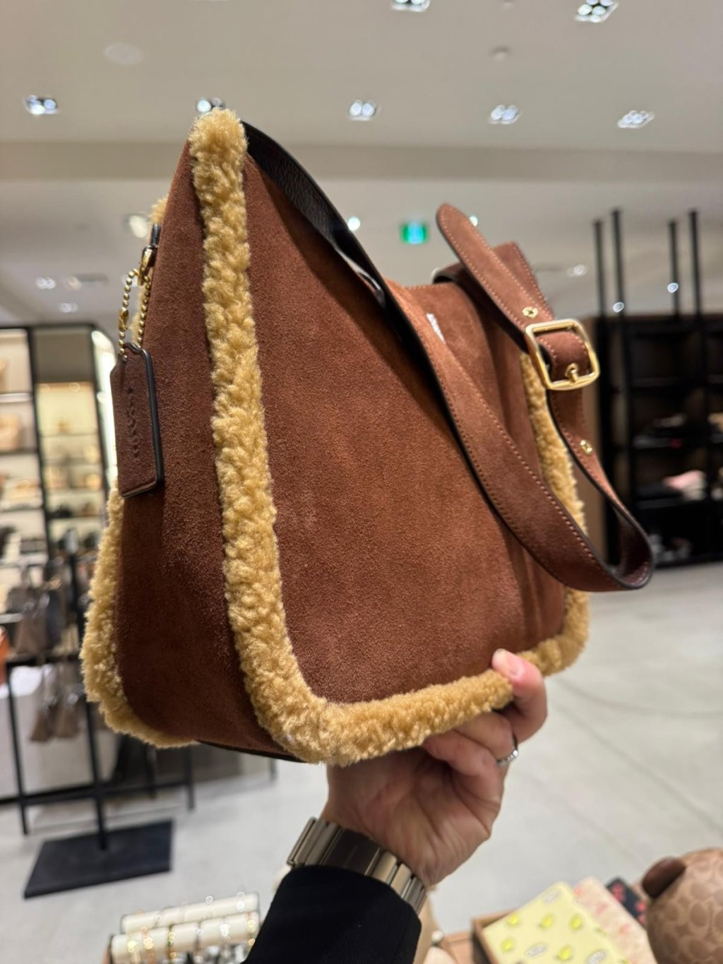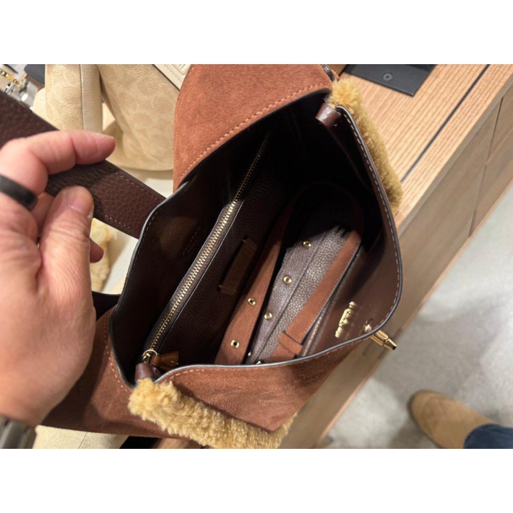 Coach Hadley 麂皮羊毛邊單肩 + 斜孭兩用 Convertible Crossbody Bag (啡 Vintage Brown Multi)