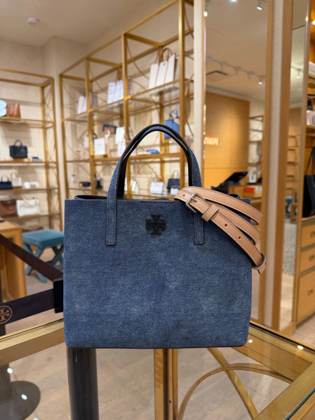 Home Tory Burch Blake Denim Suede Small Tote