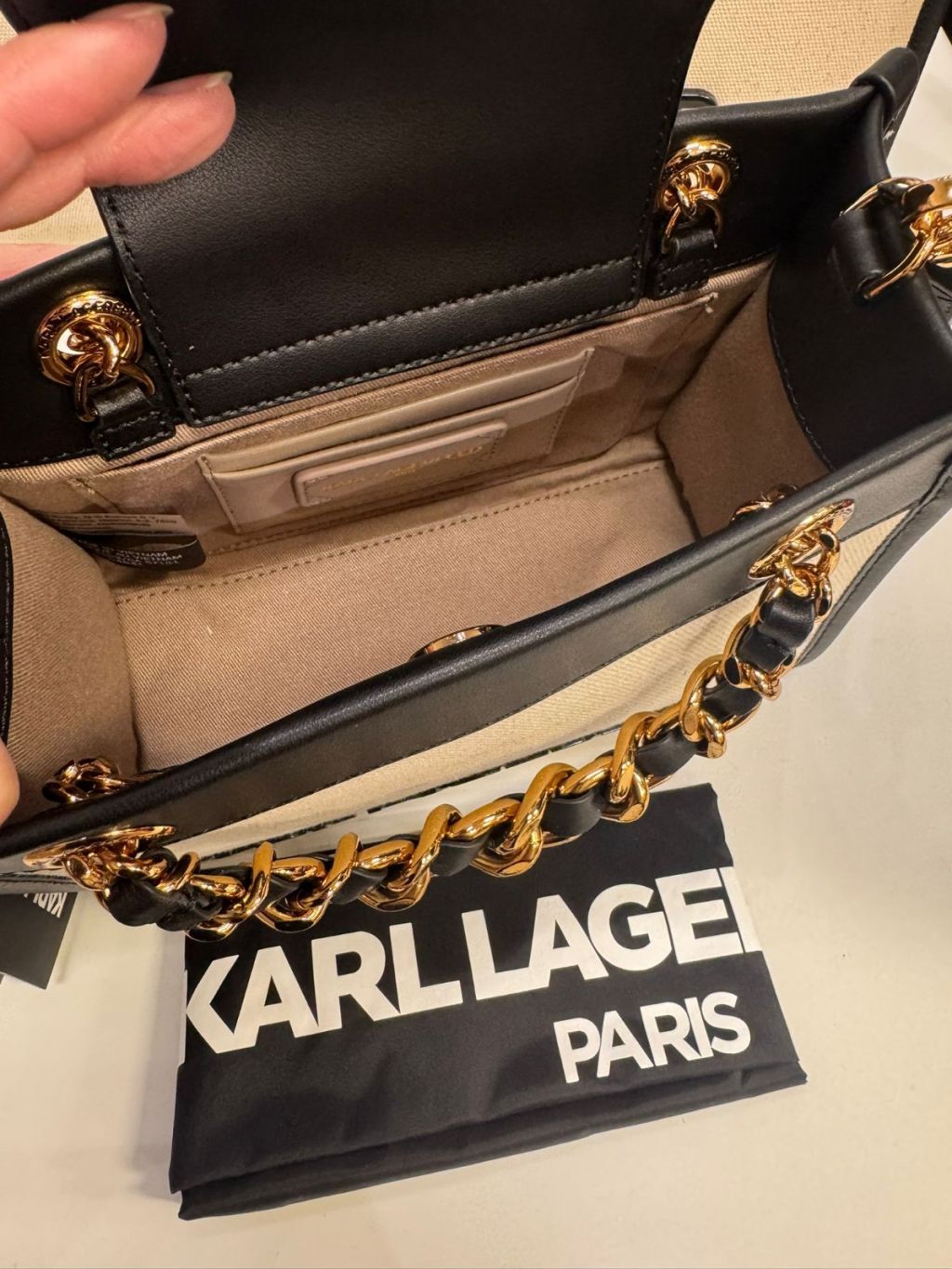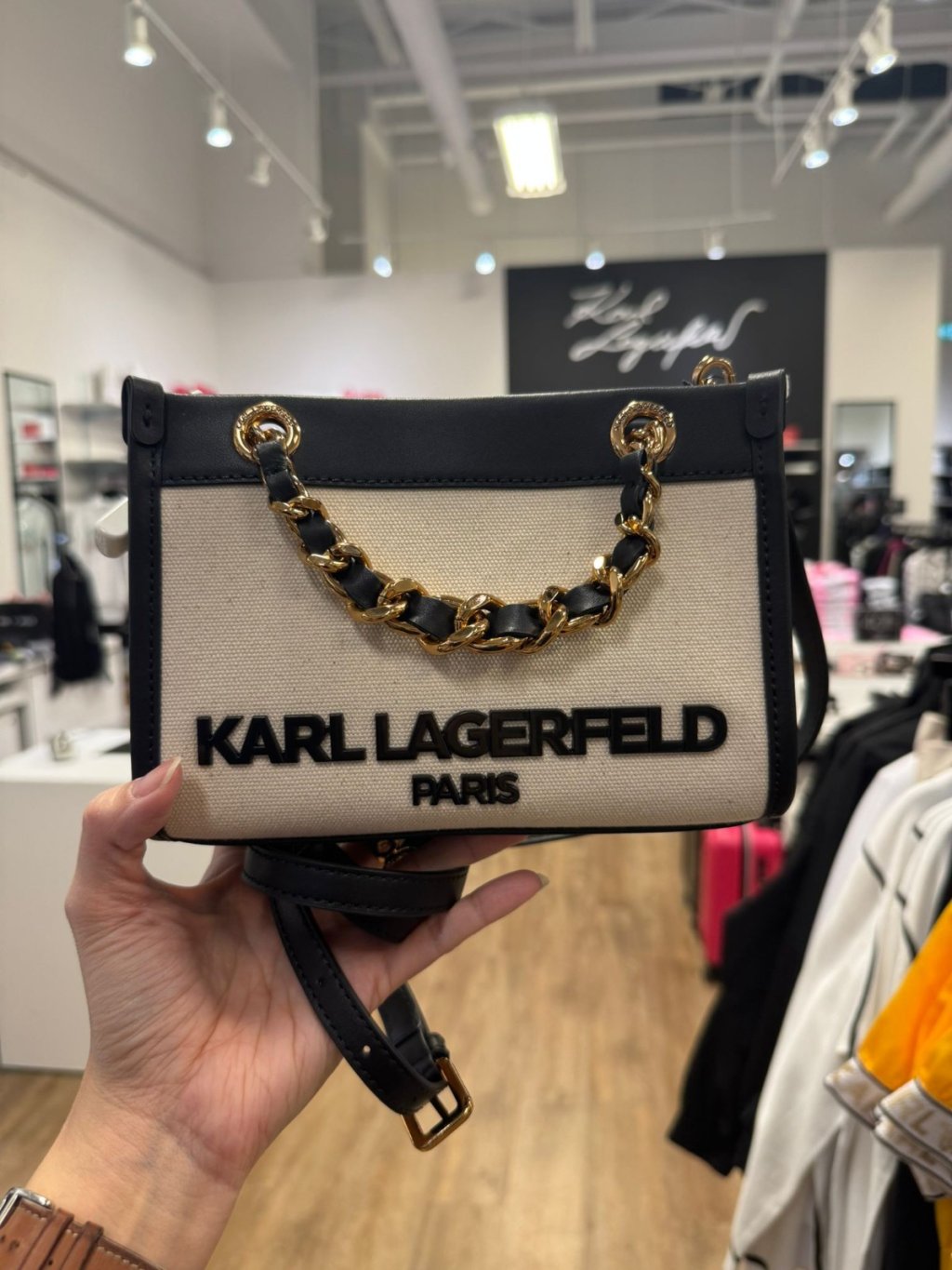 主頁 Karl Lagerfeld 老佛爺鏈條帶小Tote Savoie Mini Crossbody Canvas (帆布)