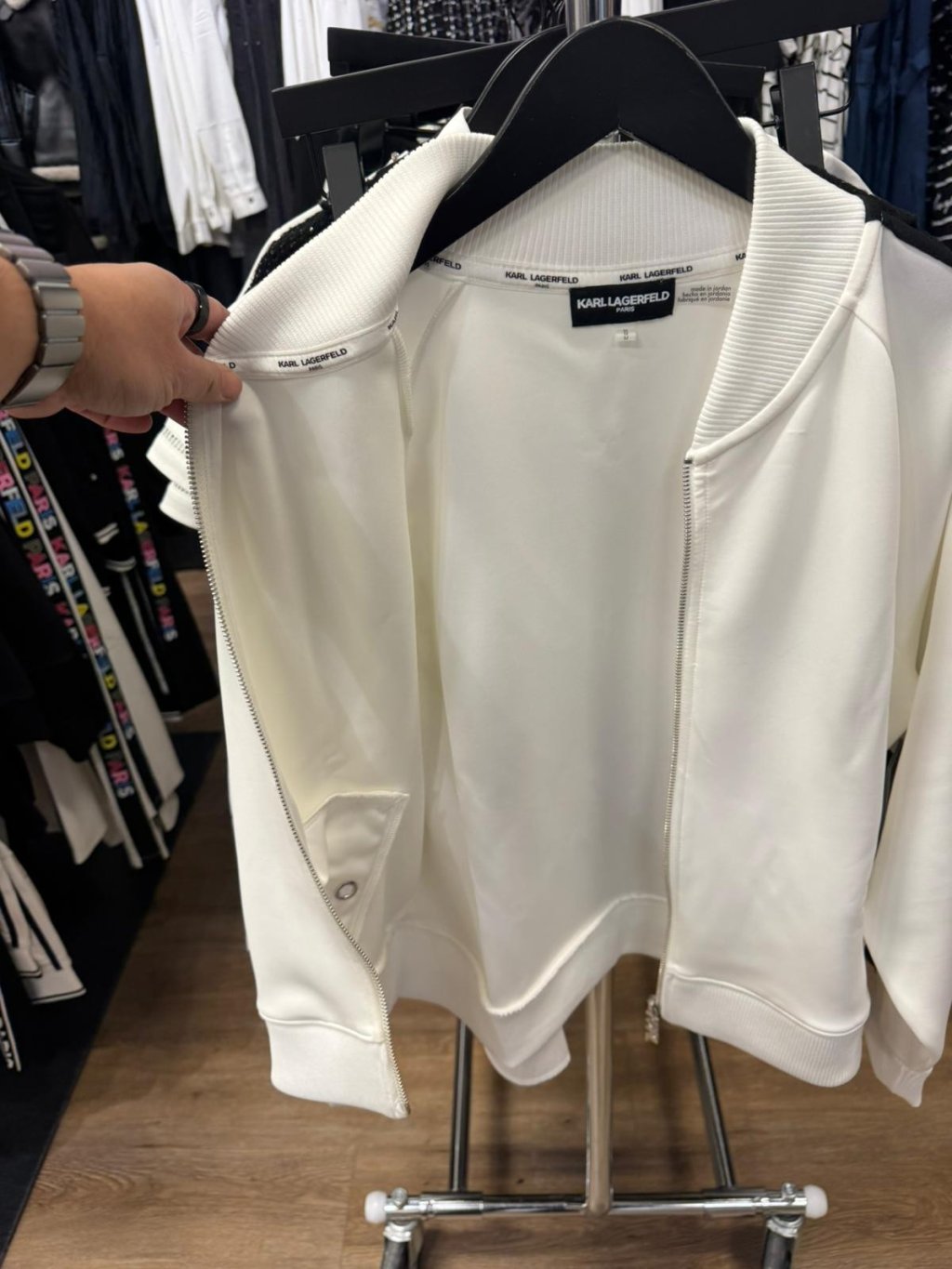 主頁 Karl Lagerfeld 女裝 Vanity Full Zip up (白 x 彩字 White x Colour Strip)