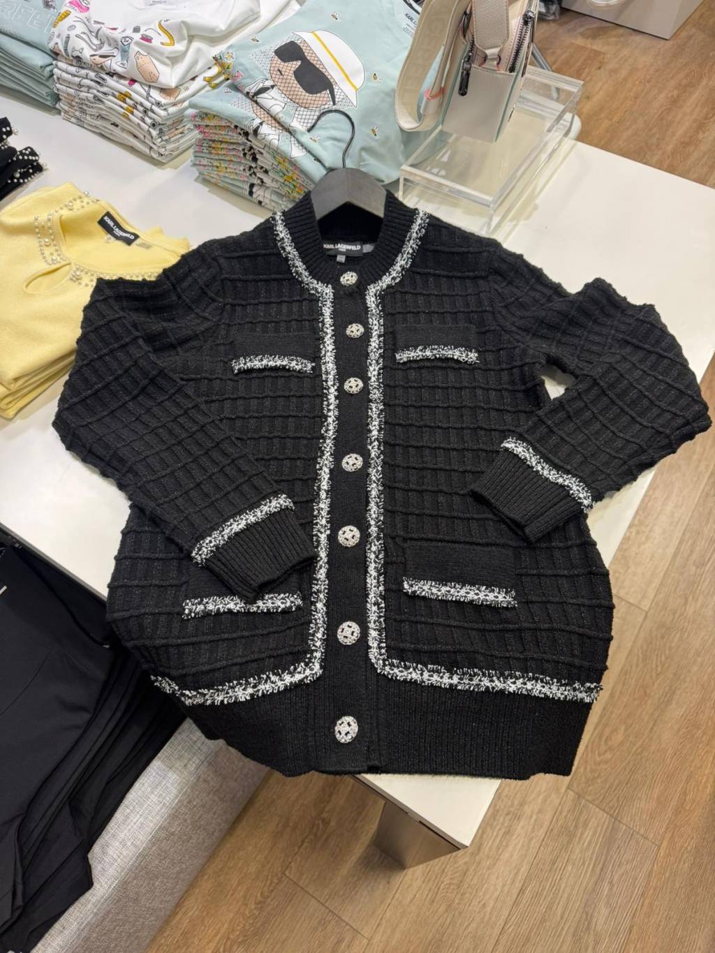 主頁 Karl Lagerfeld 女裝開胸 Tweed Trim Cardigan (黑 Black)
