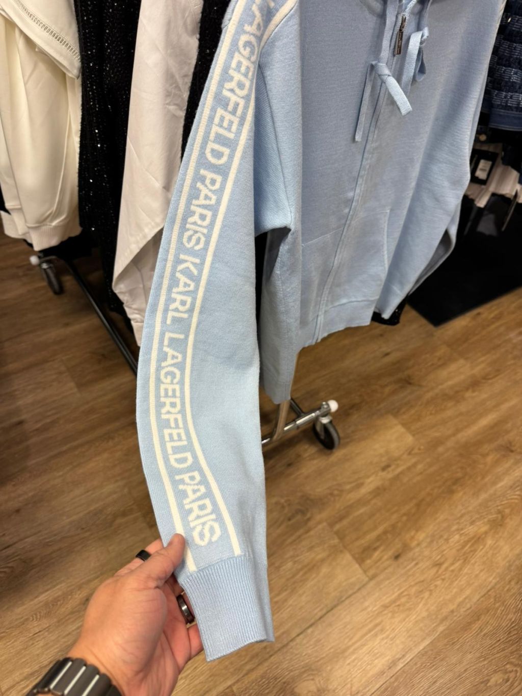 Karl Lagerfeld Women Logo Full-zip Sweater With Hoodie (Blue)