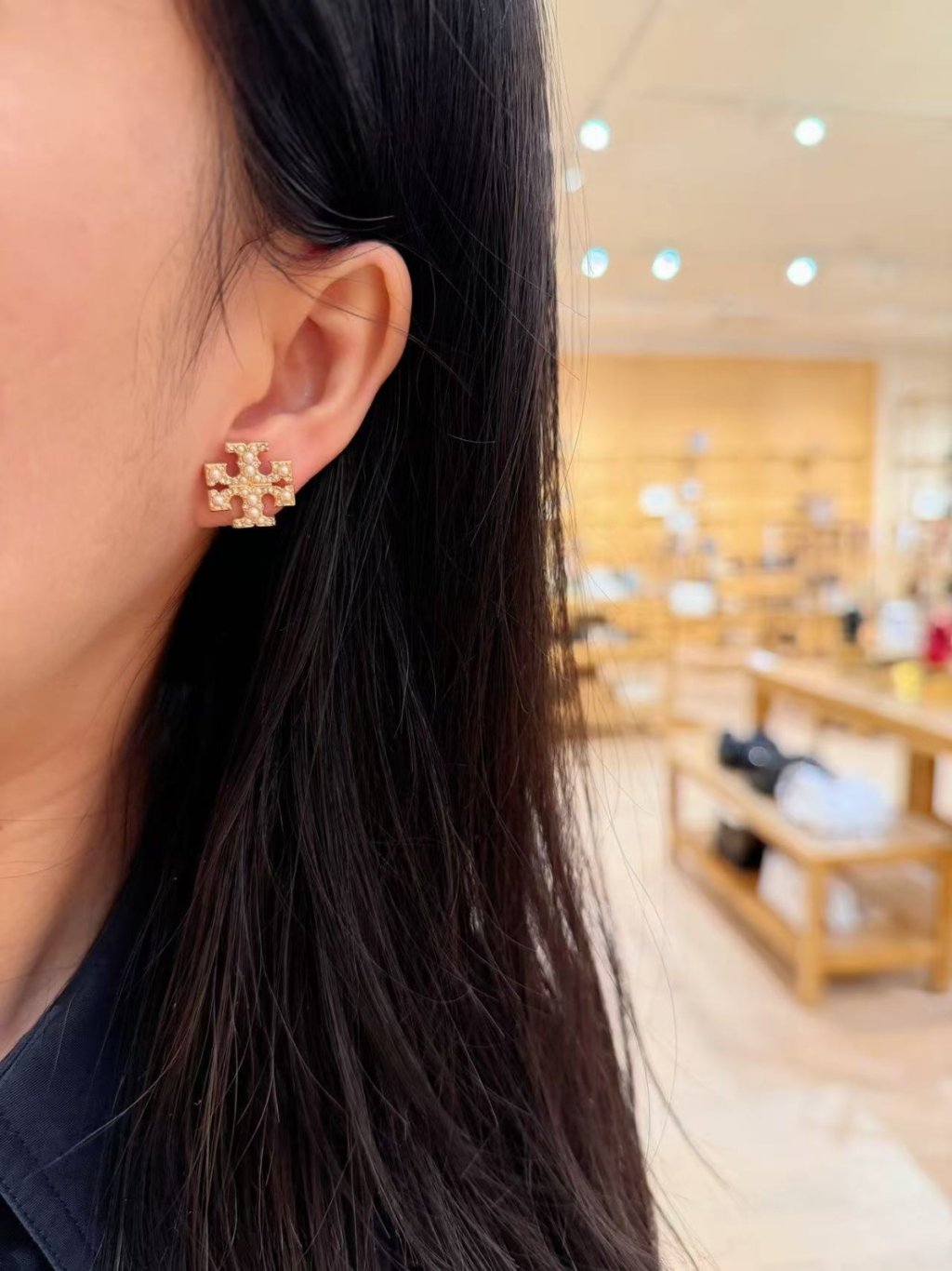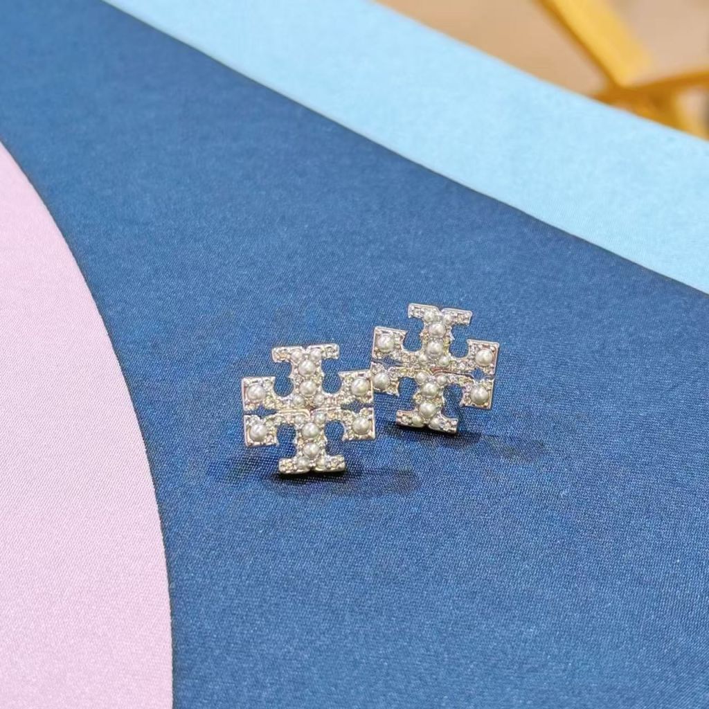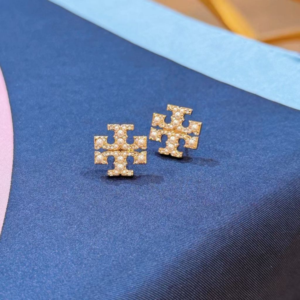 Home Tory Burch Pearl Pave Logo Stud