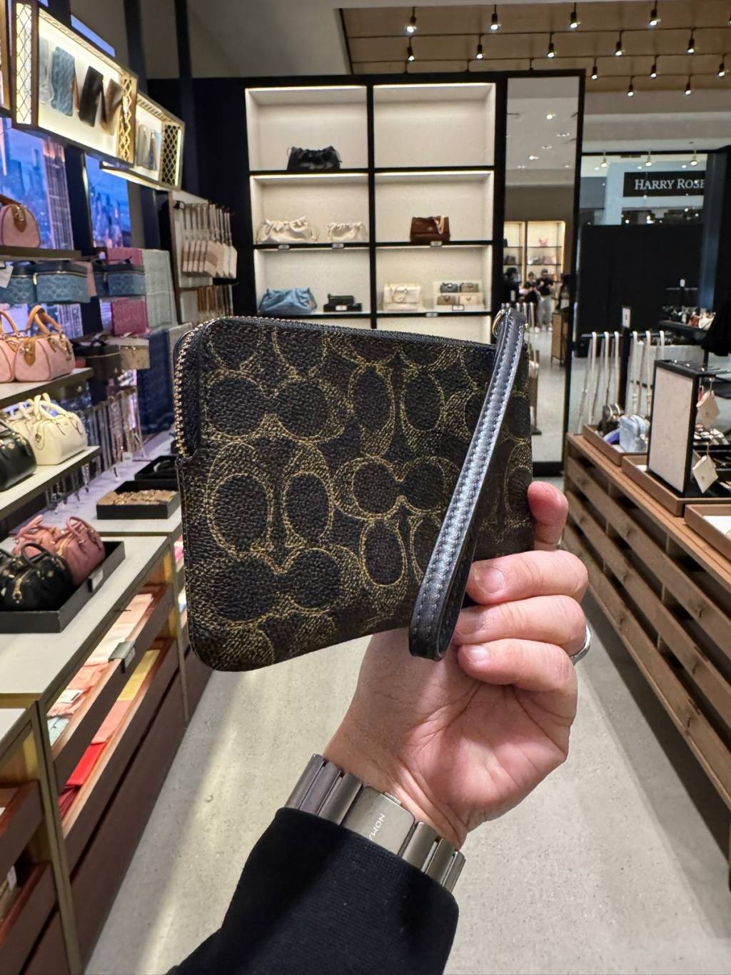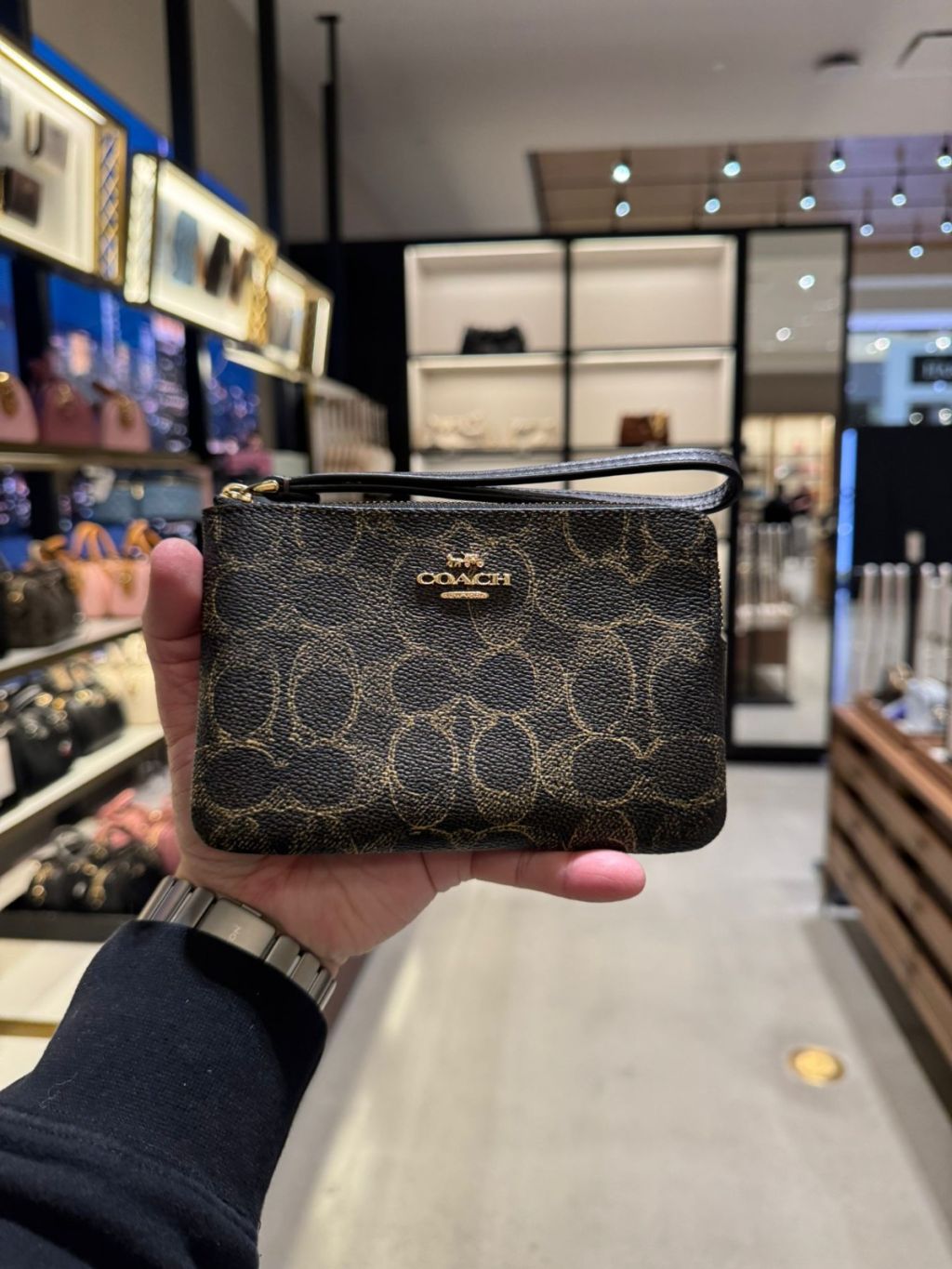 Coach Corner Zip Wristlet In Loved Signature Canvas (Gold/Brown)