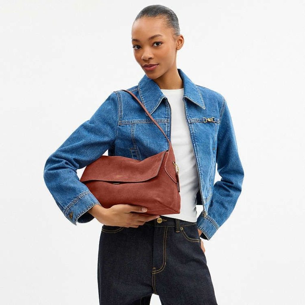 Coach 專門店 Chelsea 36 麂皮單肩手袋 (深啡 Warm Brown)
