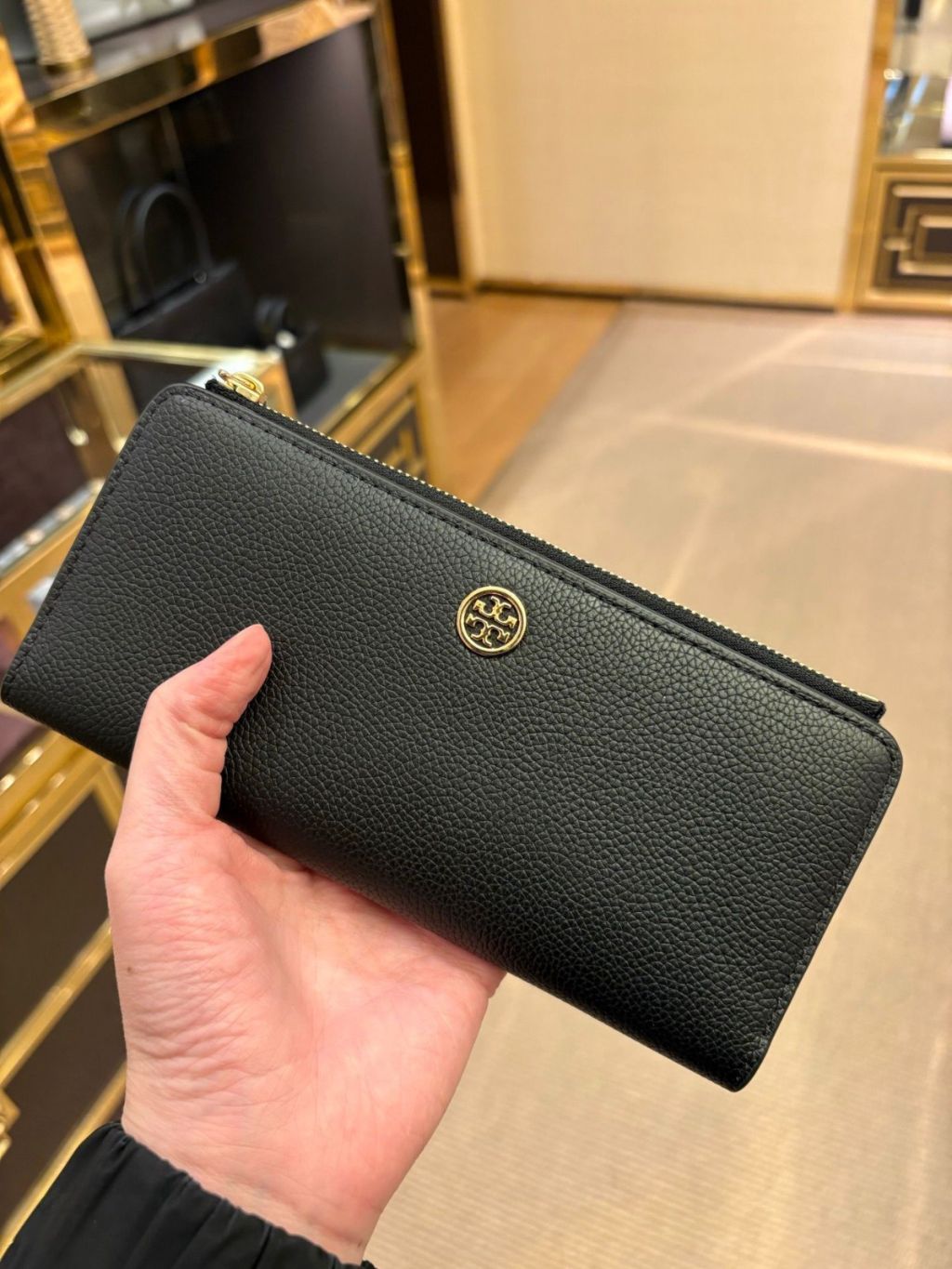Tory Burch Robinson 專門店長銀包 Pebbled Zip Slim Wallet (黑 Black)