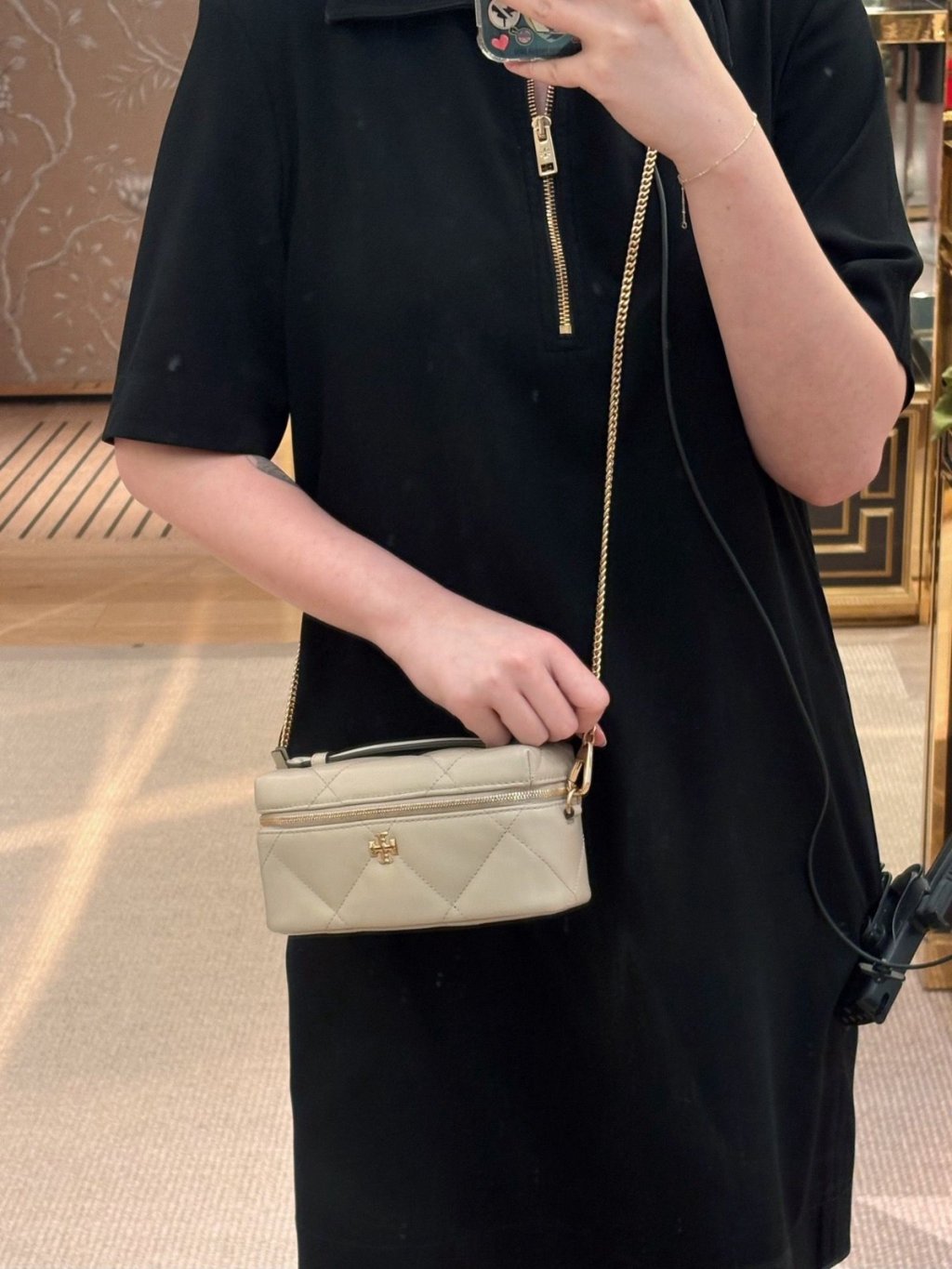 Tory Burch Kira 專門店菱格盒子包 Diamond Quilt East-west Vanity Case (淺石色 Light Stone)