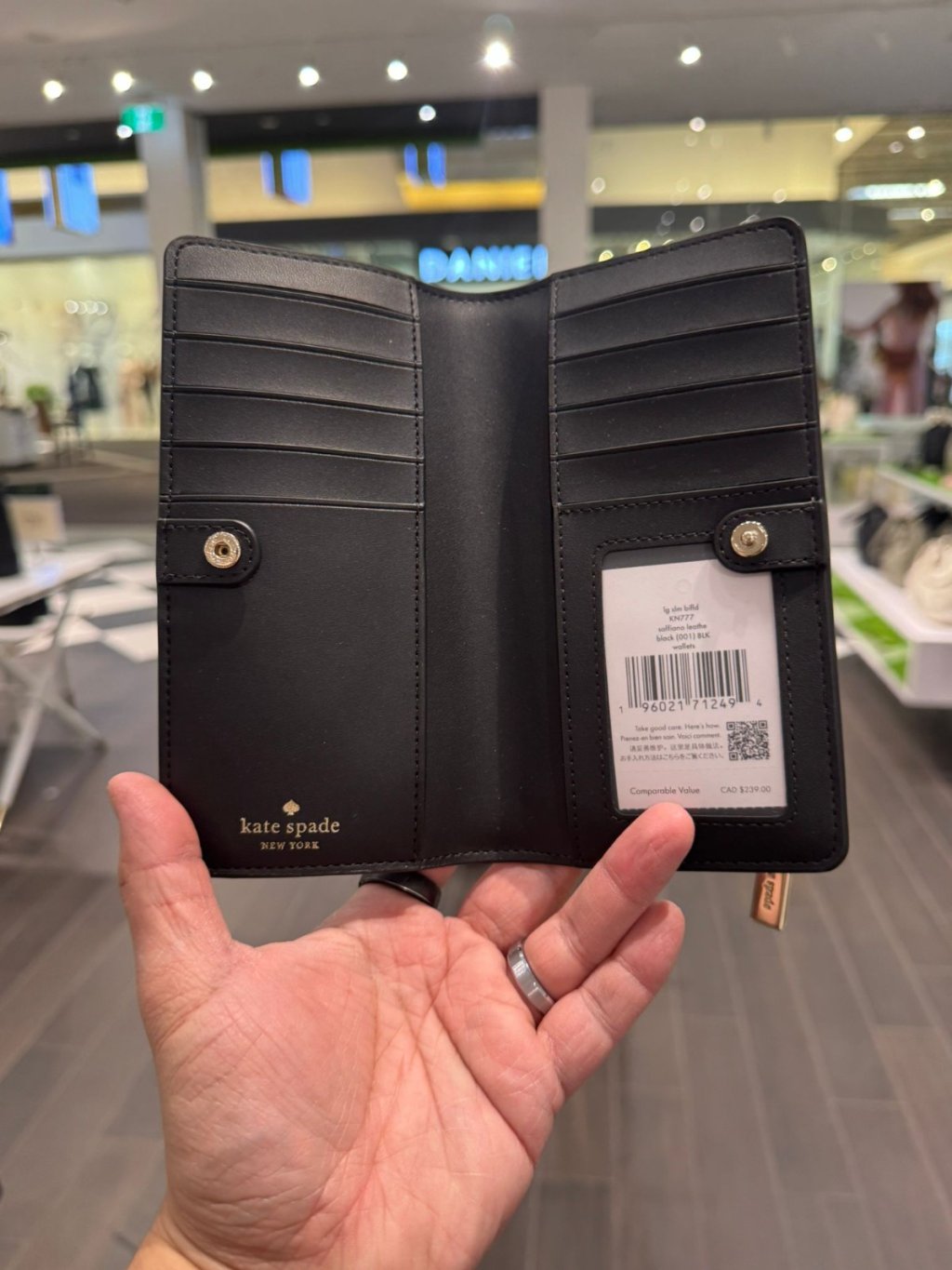 Kate Spade Large Slim Bifold Wallet (Black)