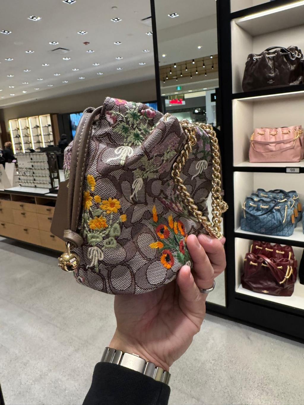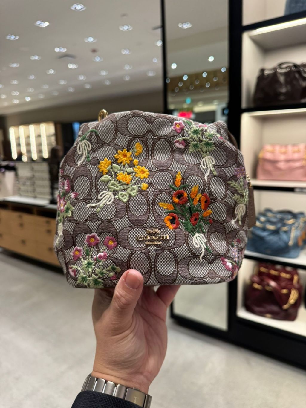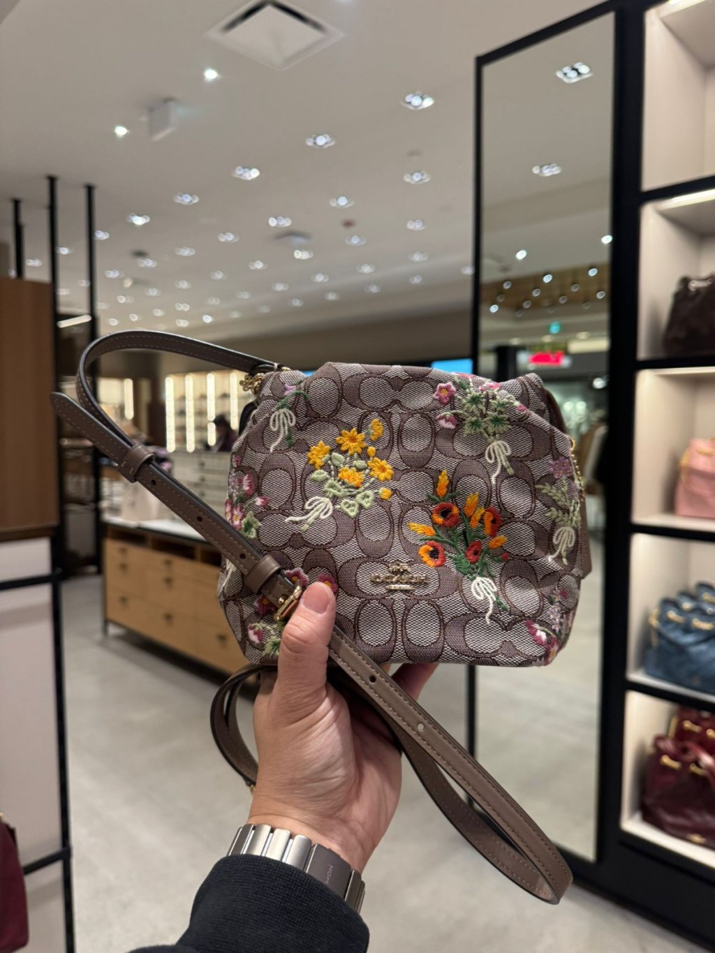 Coach Faye 繡花小水桶 Mini Drawstring Bag In Signature Jacquard With Floral Embroidery