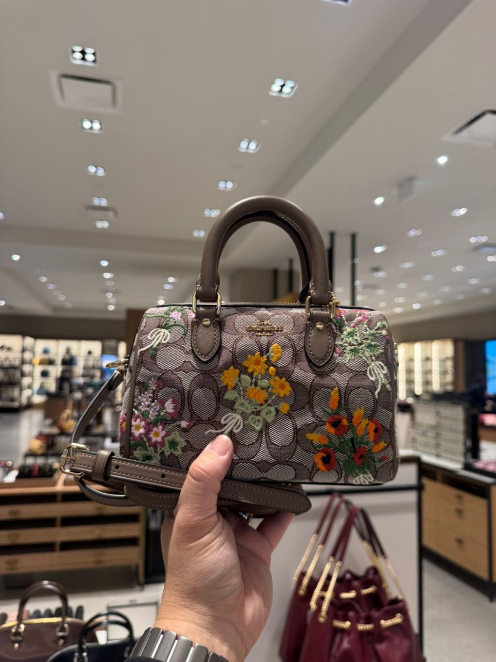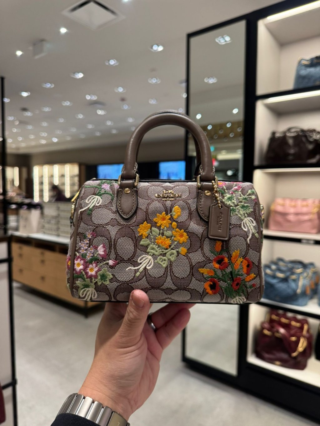主頁 Coach Rowan 繡花小波士頓 Mini Rowan Crossbody Bag In Signature Jacquard With Floral Embroidery