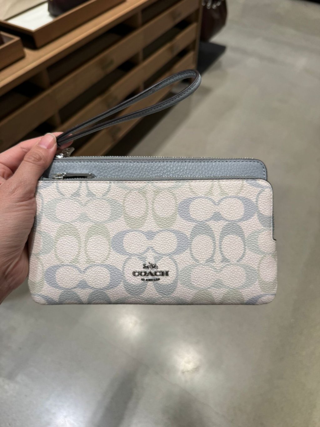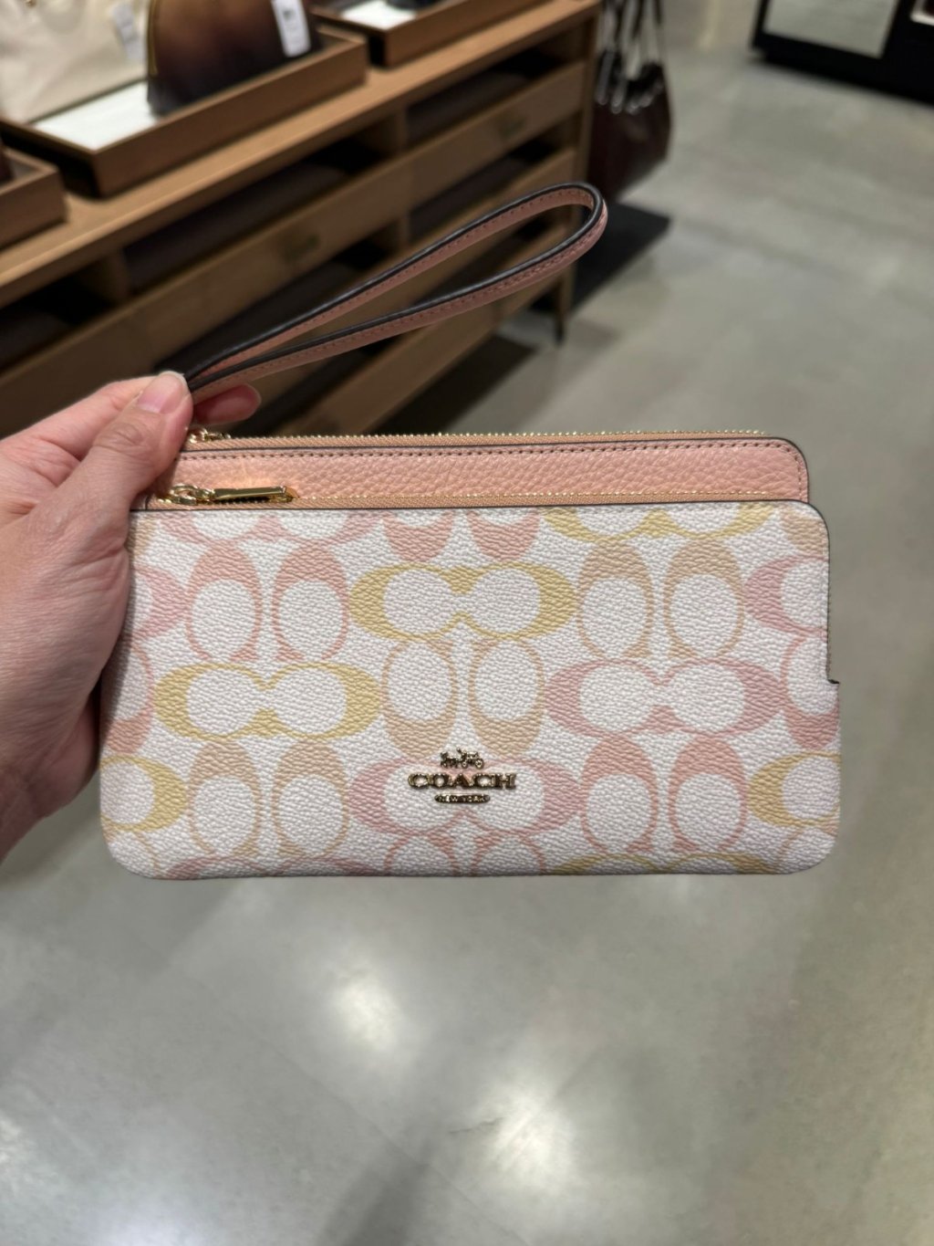 主頁 Coach 大雙手拿包 Double Zip Wristlet In Pretty Signature Canvas