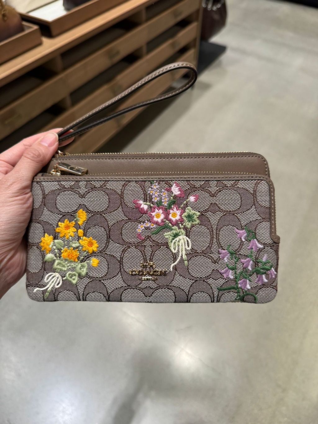 Coach 繡花大雙手拿包 Double Zip Wristlet In Signature Jacquard With Floral Embroidery