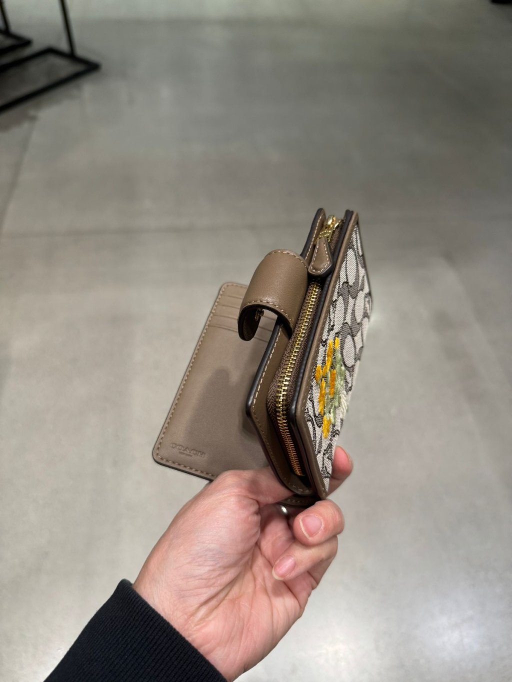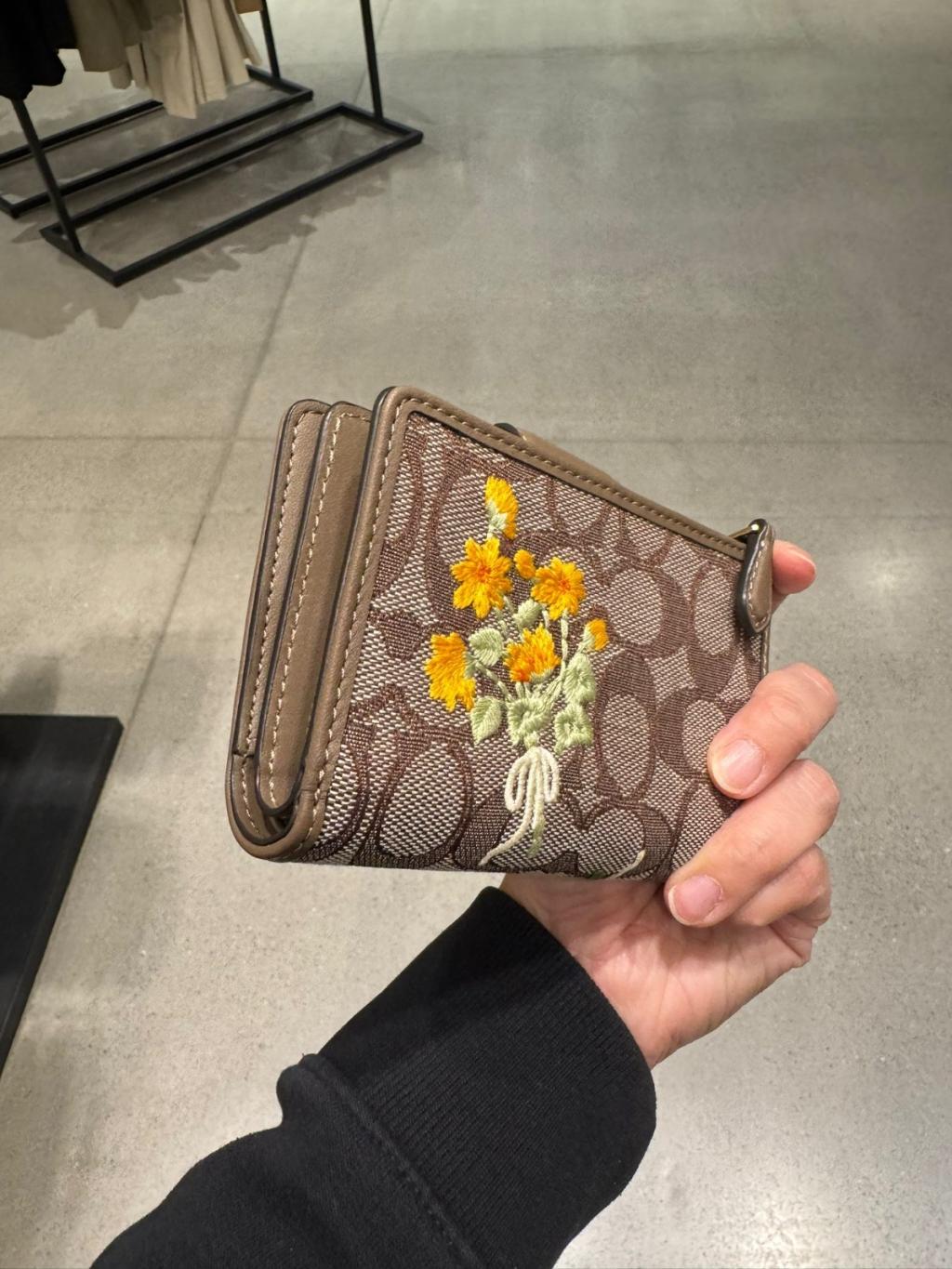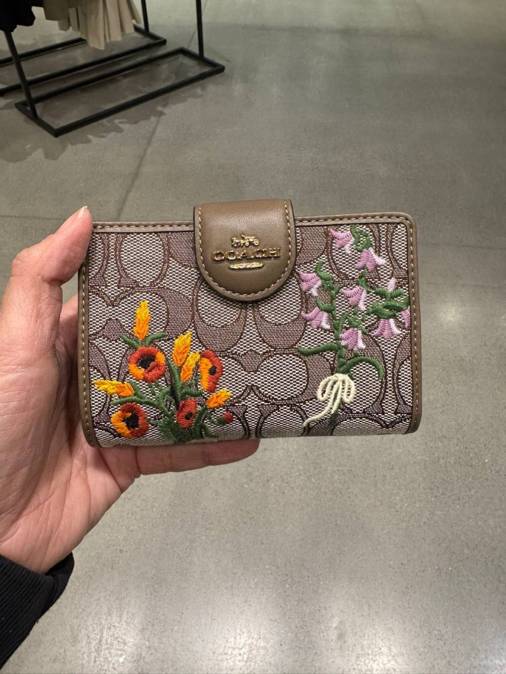 主頁 Coach 繡花中銀包 Medium Corner Zip Wallet In Signature Jacquard With Floral Embroidery