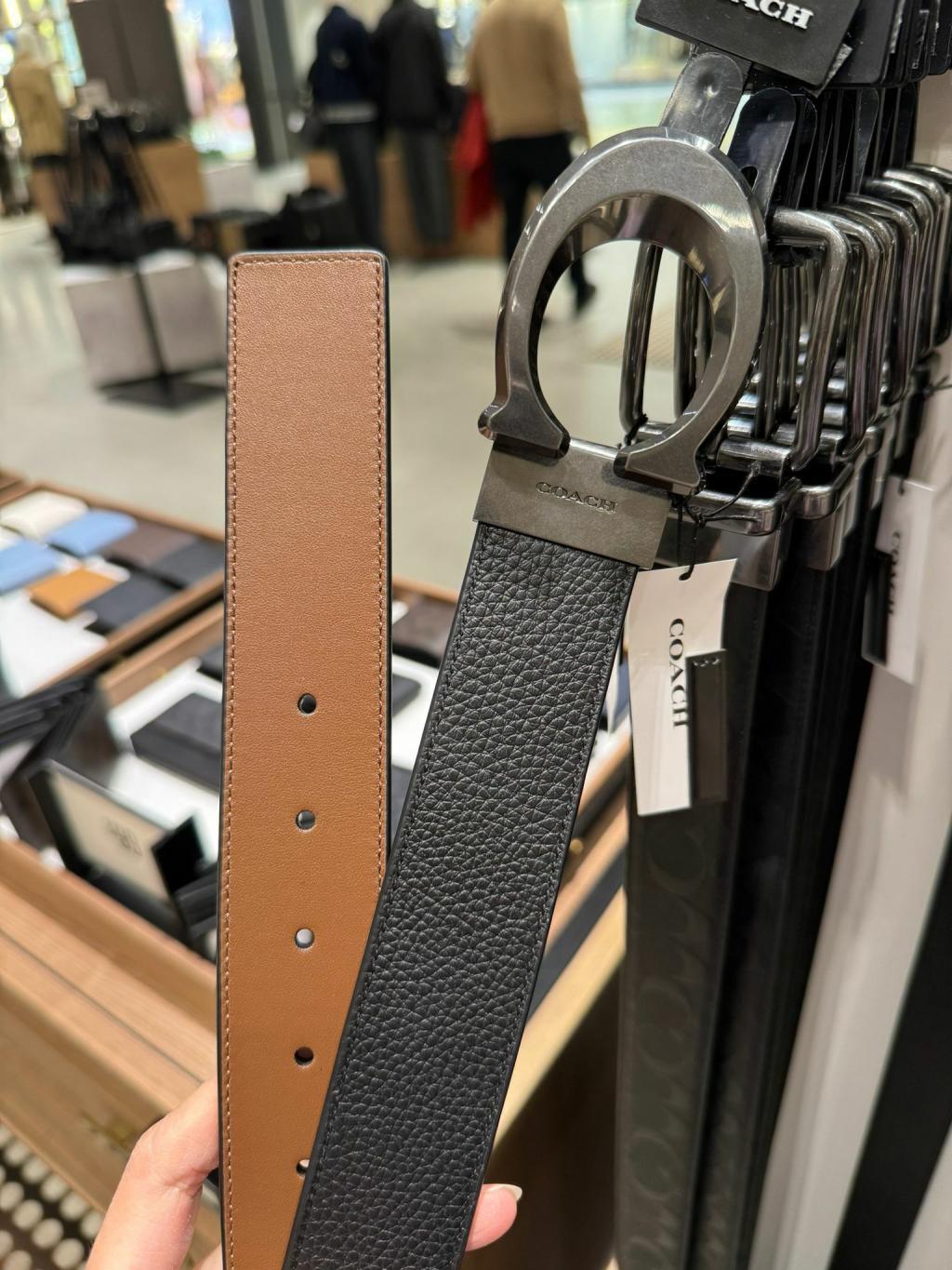Coach 男裝雙面皮帶 38mm (素黑 x C扣)