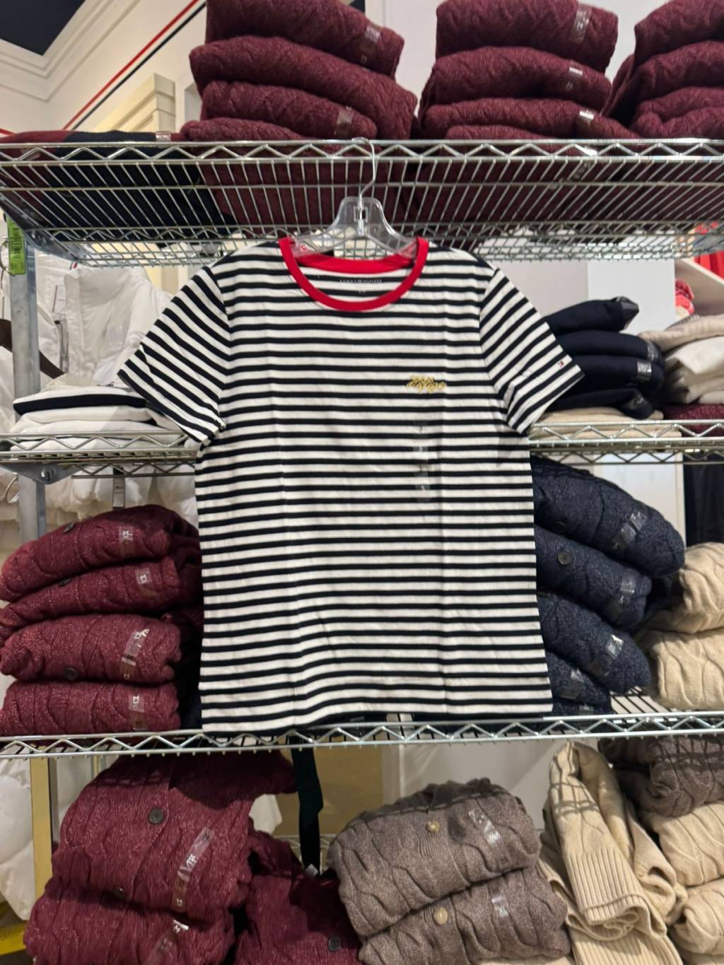 XW07523 TH 女裝繡字 Logo 間條 Tee