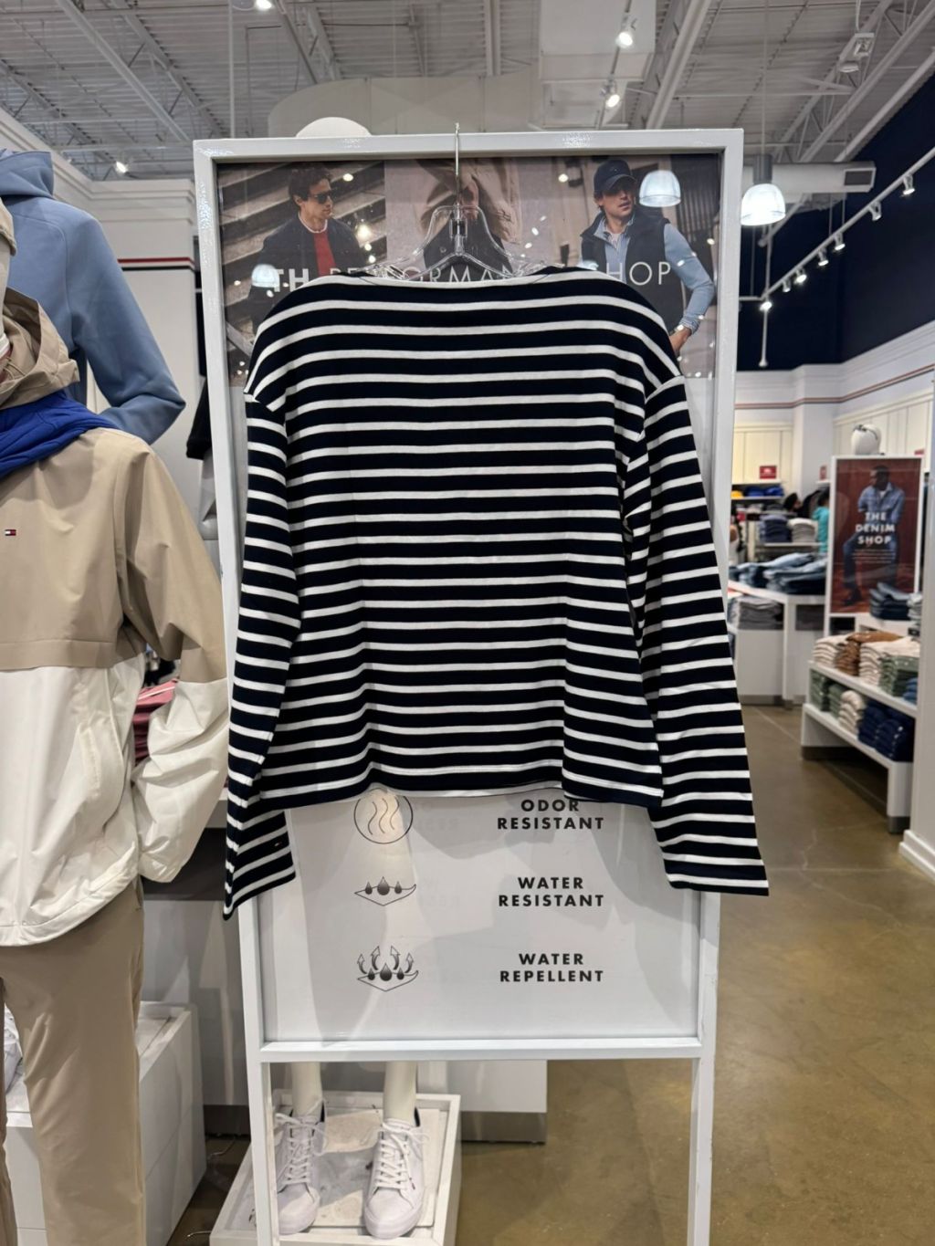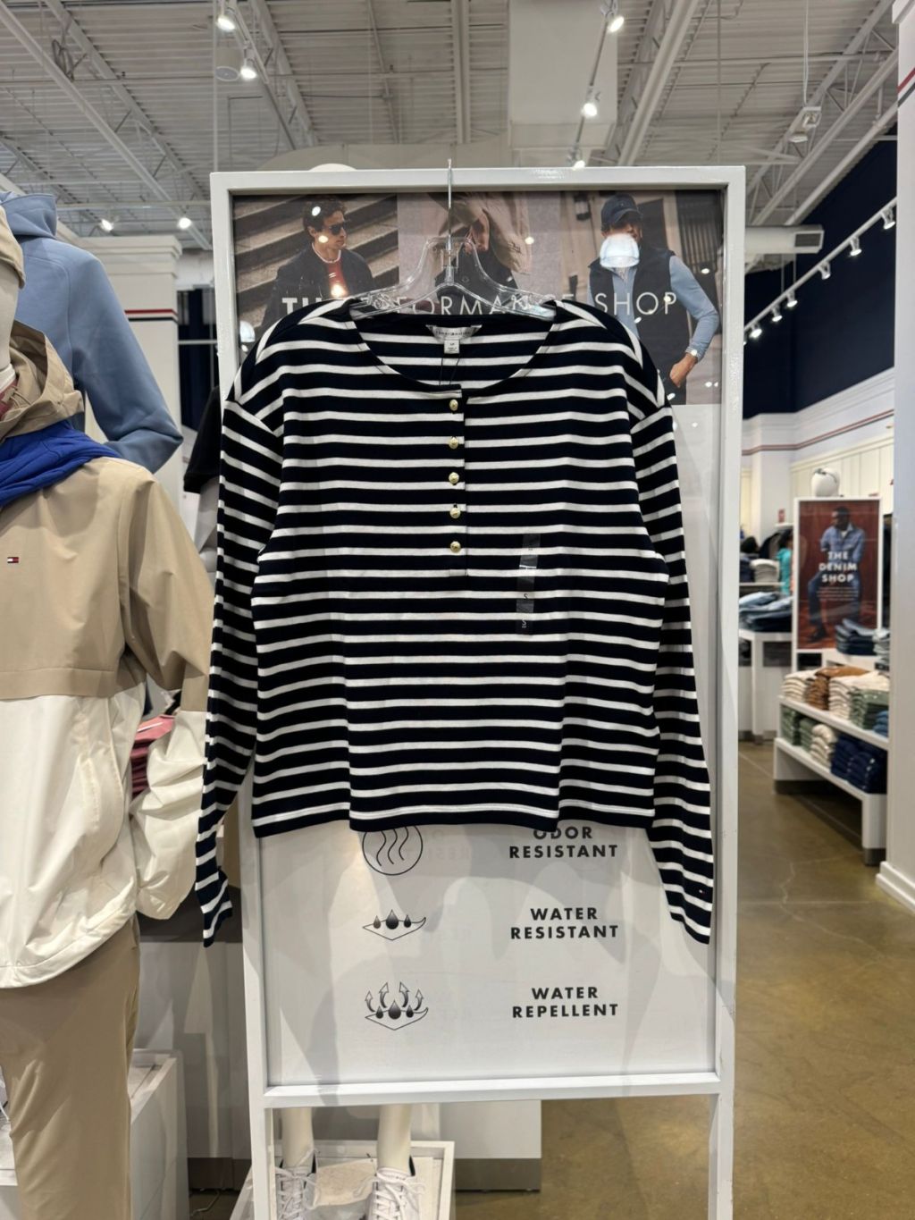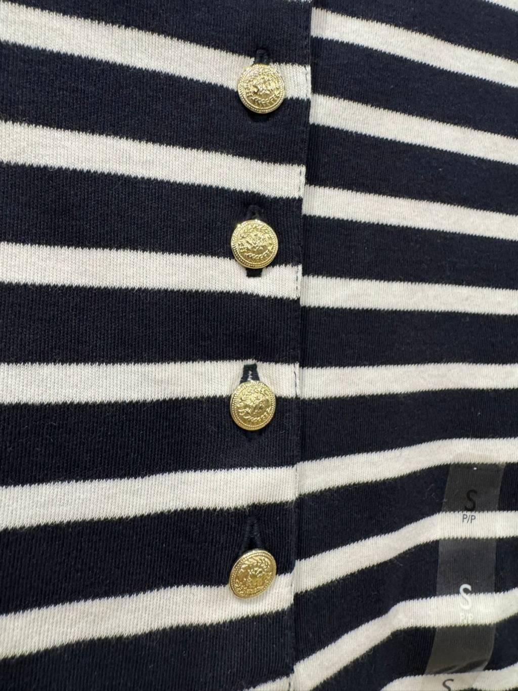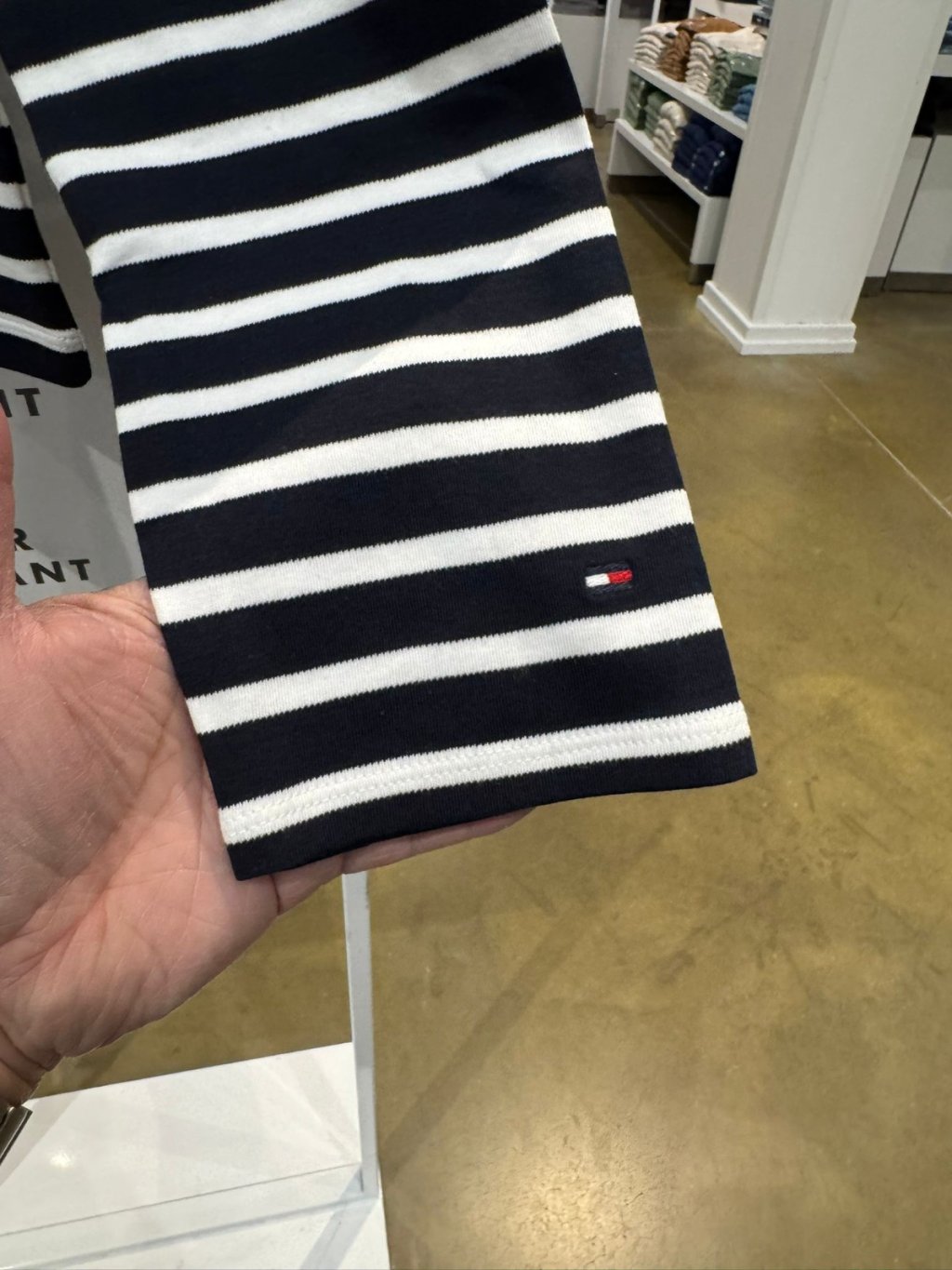 XW08129 TH Women Button Long Sleeve (400 Navy x White Strip)