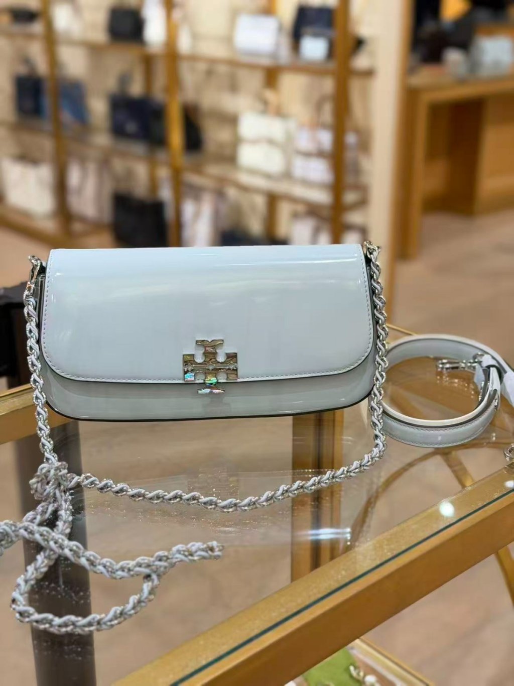 Tory Burch Britten Abalone Convertible Shoulder Bag (Light Blue)