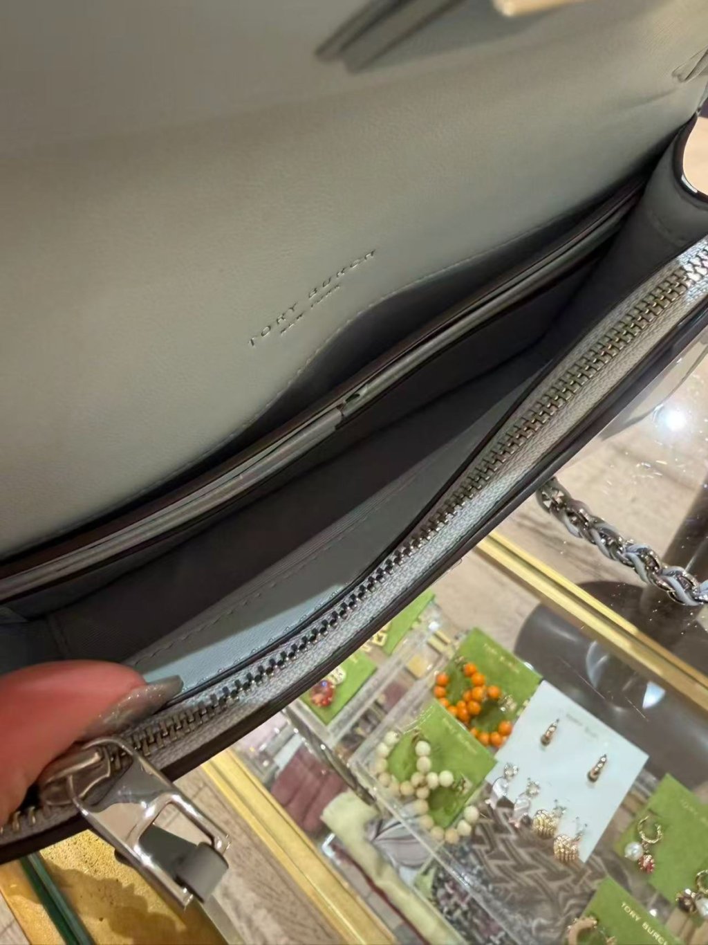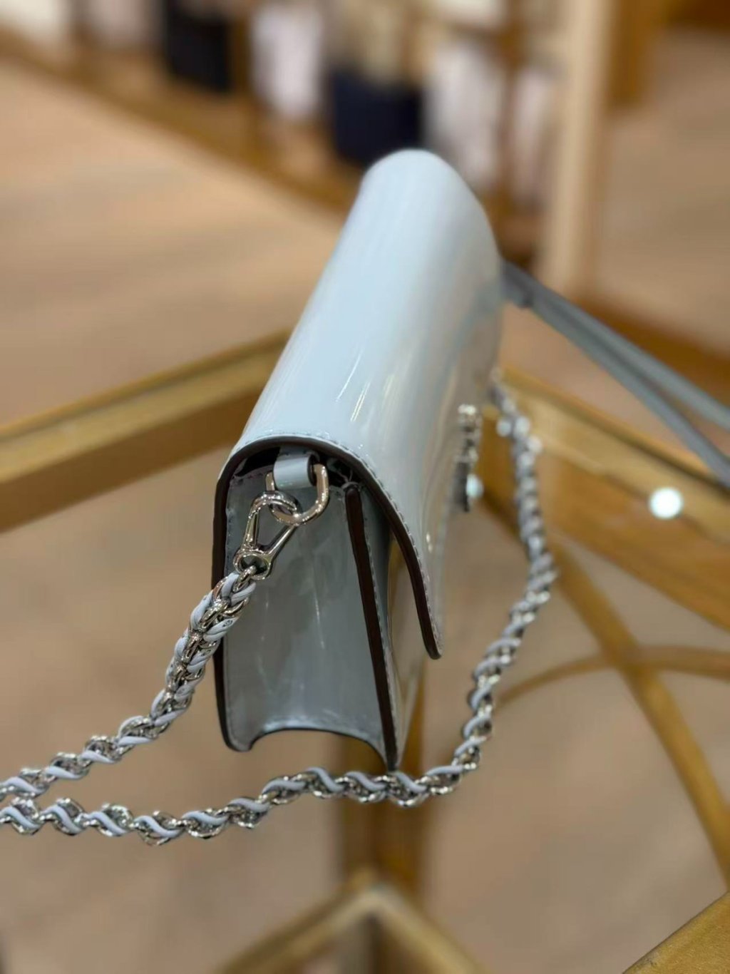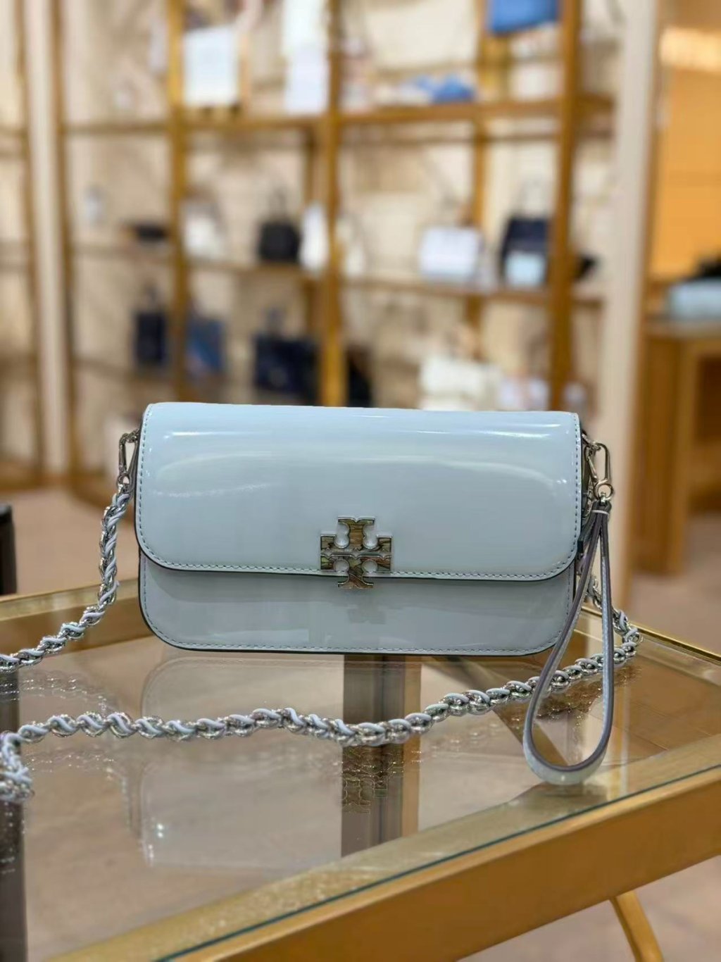 🈹️清貨 Tory Burch Britten 鏈條銀包 Abalone Chain Wallet (漆皮水藍 Light Blue)
