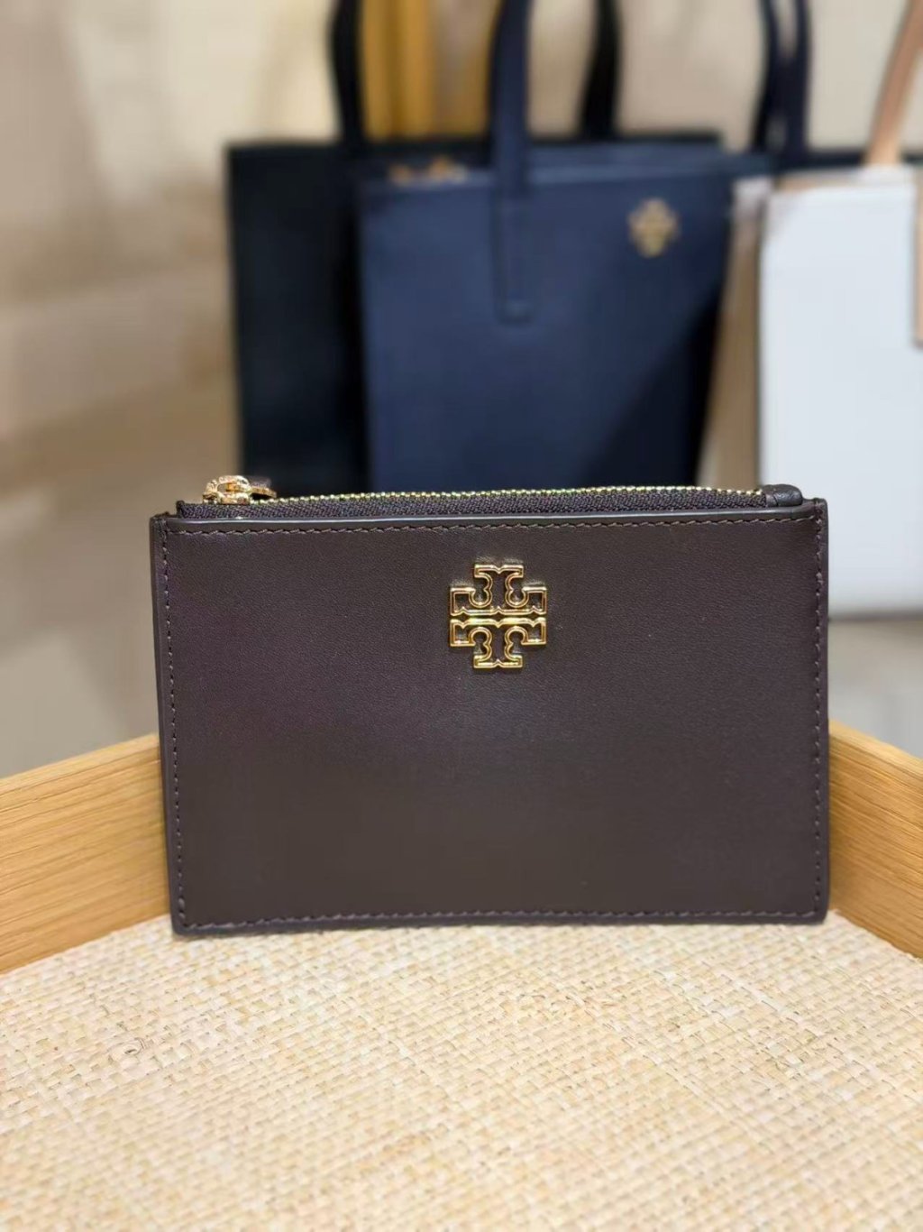 🈹清貨 Tory burch Britten 拉鏈卡包 Zip card case (深啡 Dark Brown)